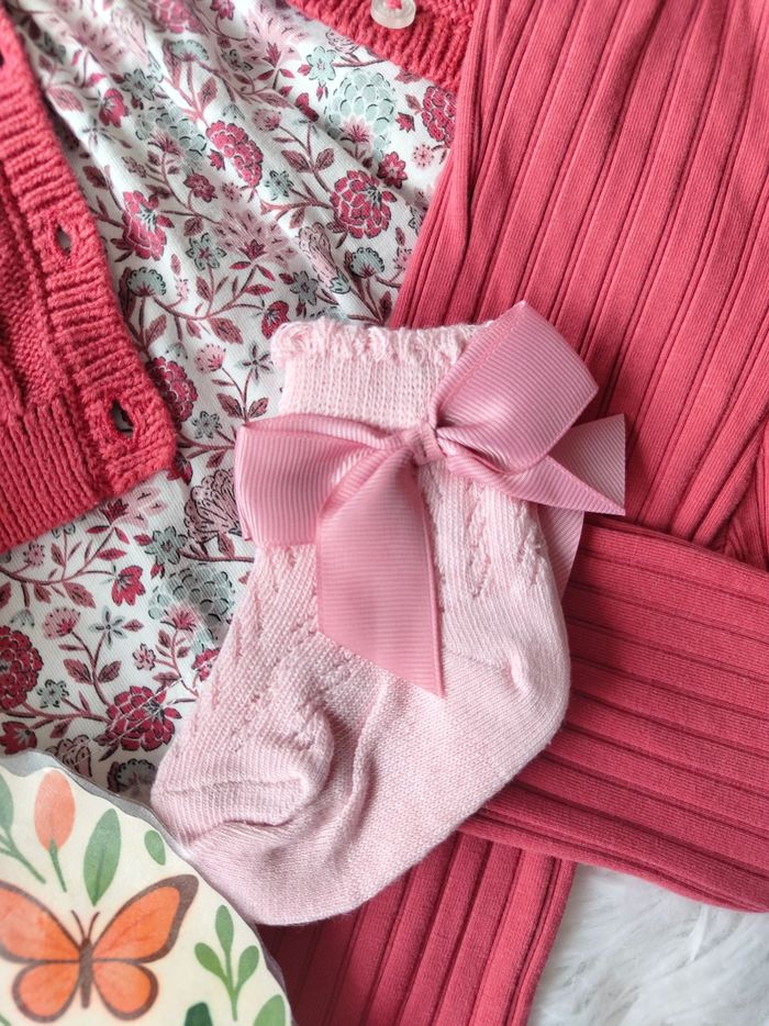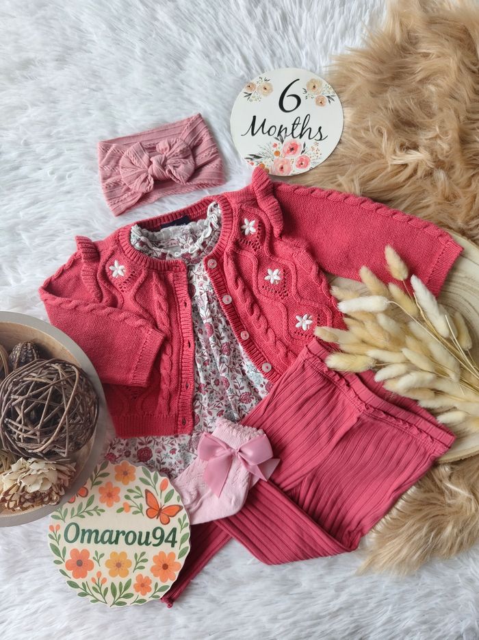 ✅ Excellent état ✅ Ensemble complet 5 pièces collection actuelle prix sans les accessoires 56,97€ ✅ Gilet tricot broderie fleurie+ blouse fleurie manches longues+ legging côtelé broderie fleur ✅ Bandeau cheveux Neuf et chaussettes neuves 🌸 N'hésitez pas à vous abonner à mon dressing, mise en ligne régulièrement 🌸
