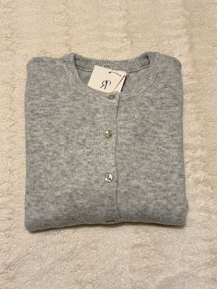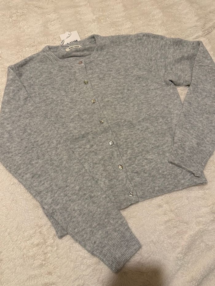 Gilet / pull doux gris clair boutons nacrés neuf avec étiquette