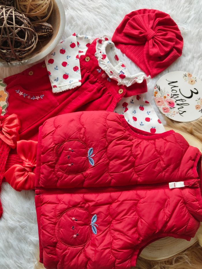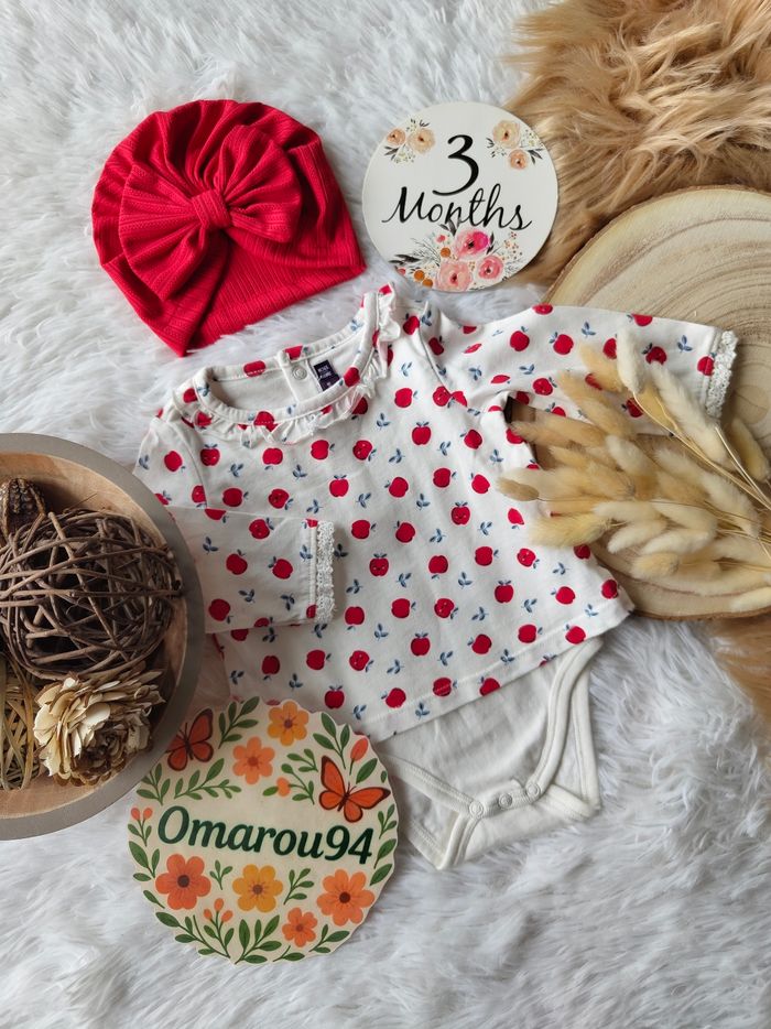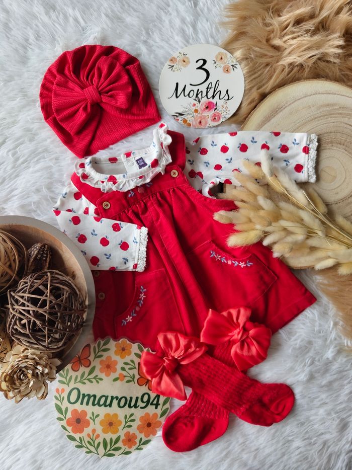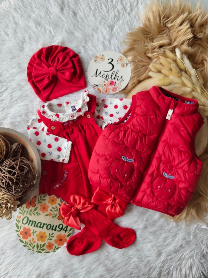 ✅ Magnifique ensemble collection actuelle prix 73,97€ sans les accessoires : doudoune réversible+robe chasuble en velours imprimé pomme+Blouse bodie 2 en 1 manches longues