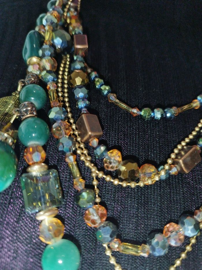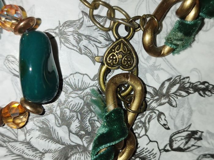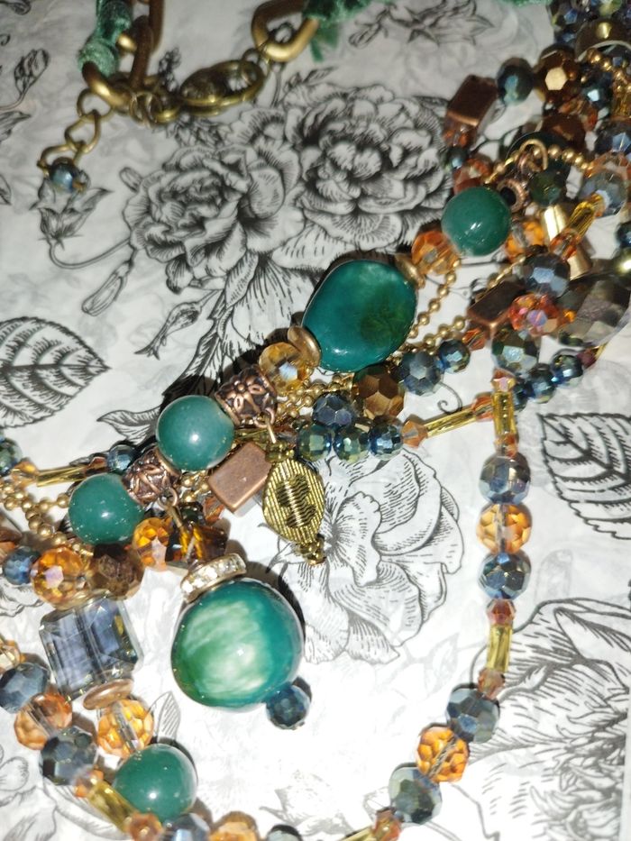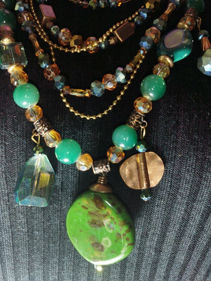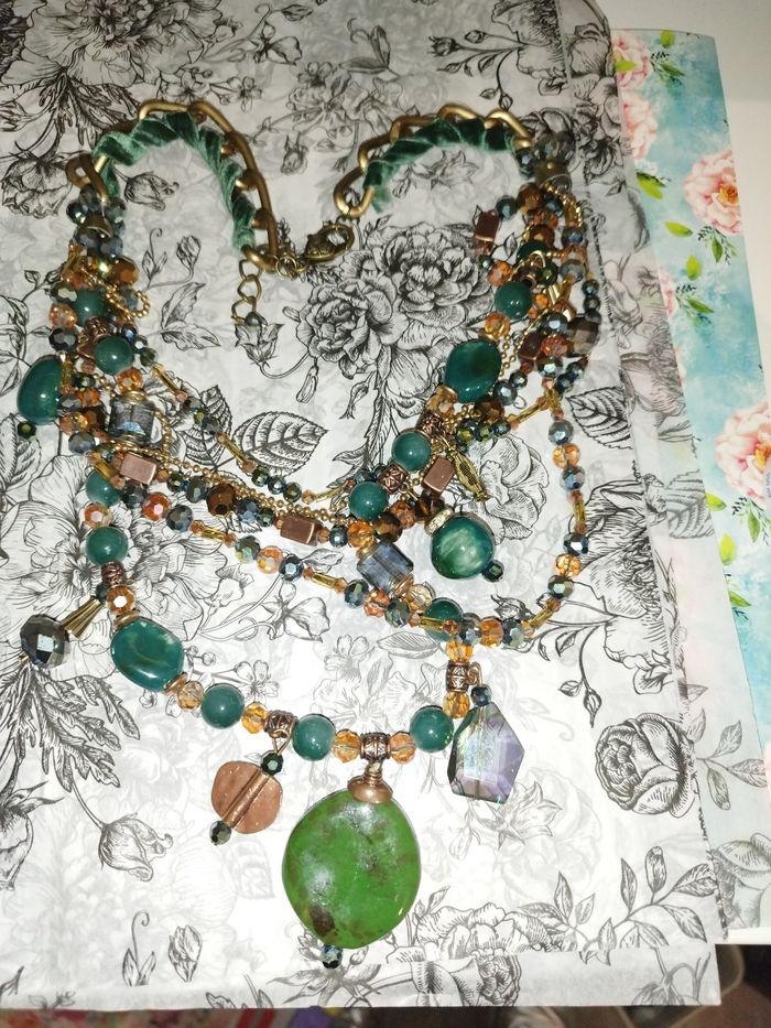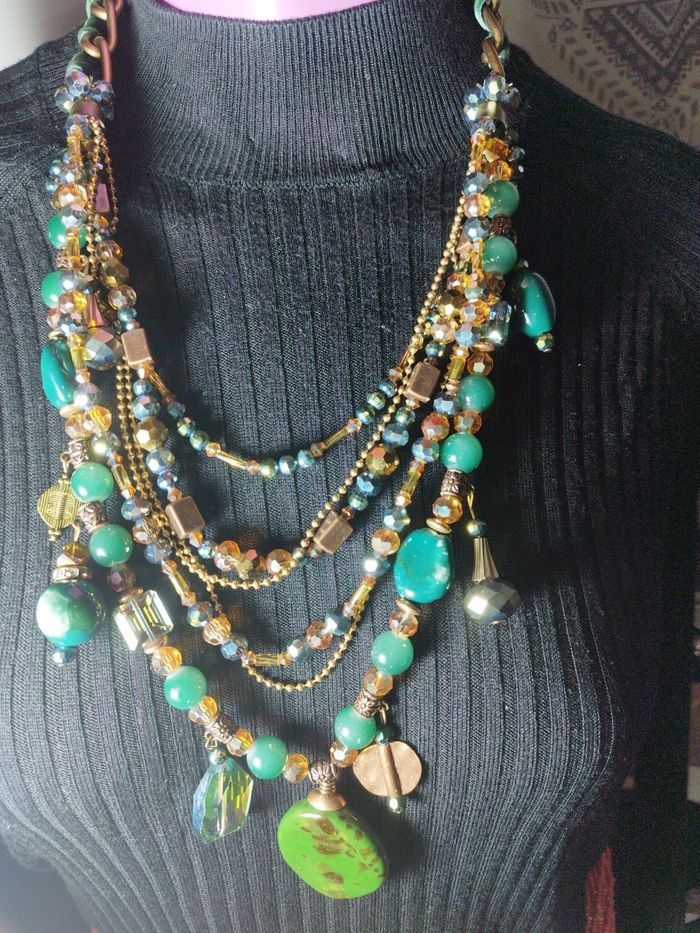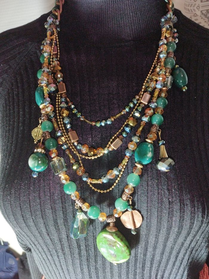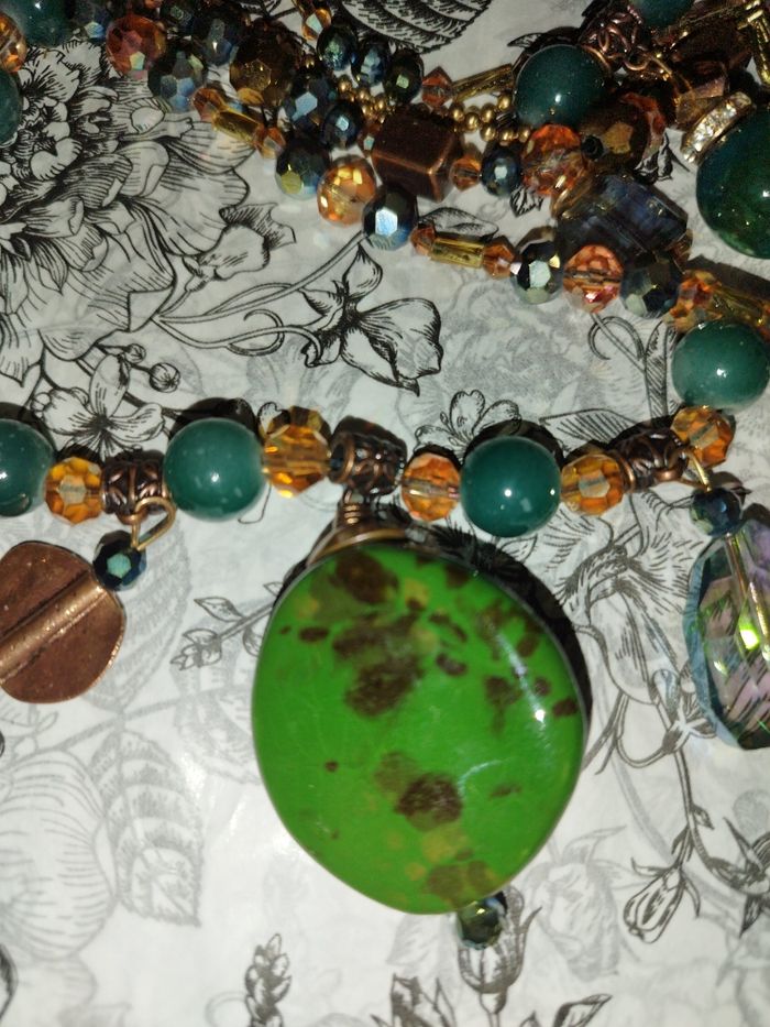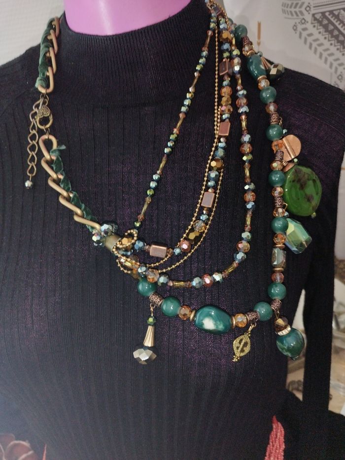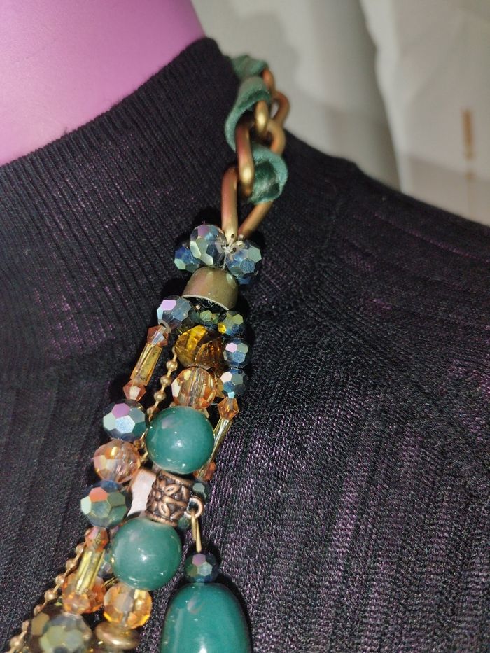 Collier vintage uivre dans un camaïeu de verts et mordoré