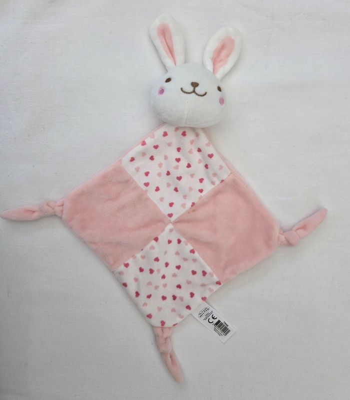 Doudou lapin grelot plat losange blanc et rose - Coeurs - Tom & Kiddy