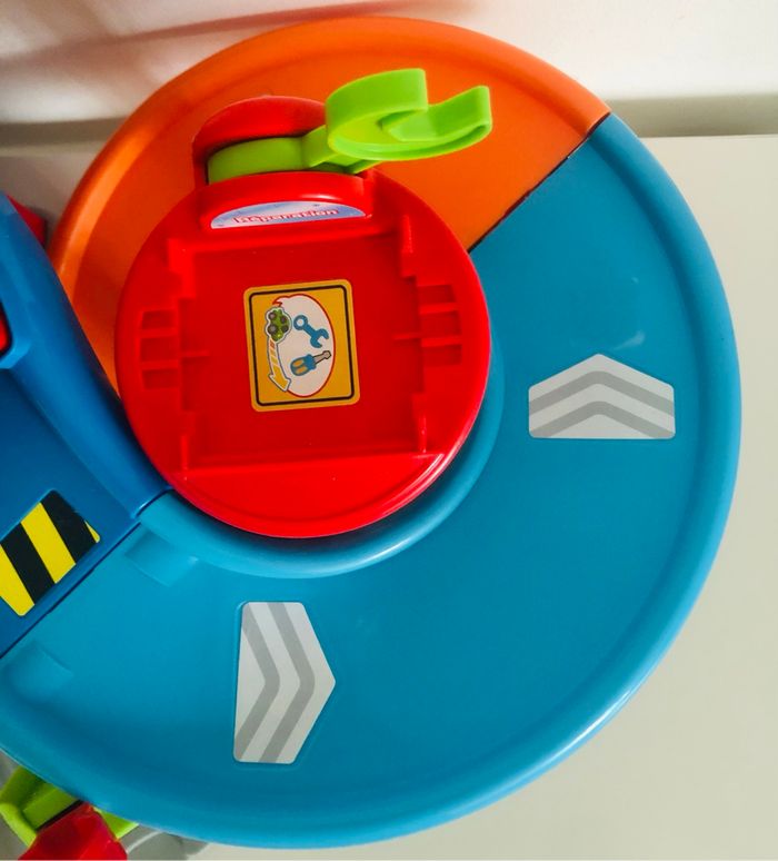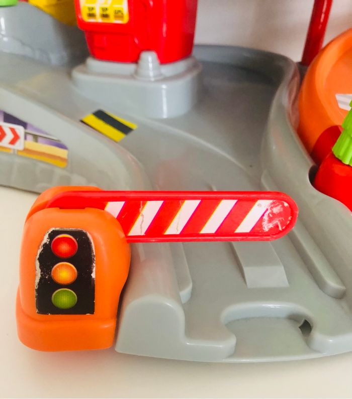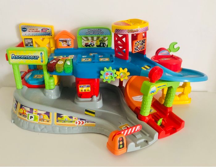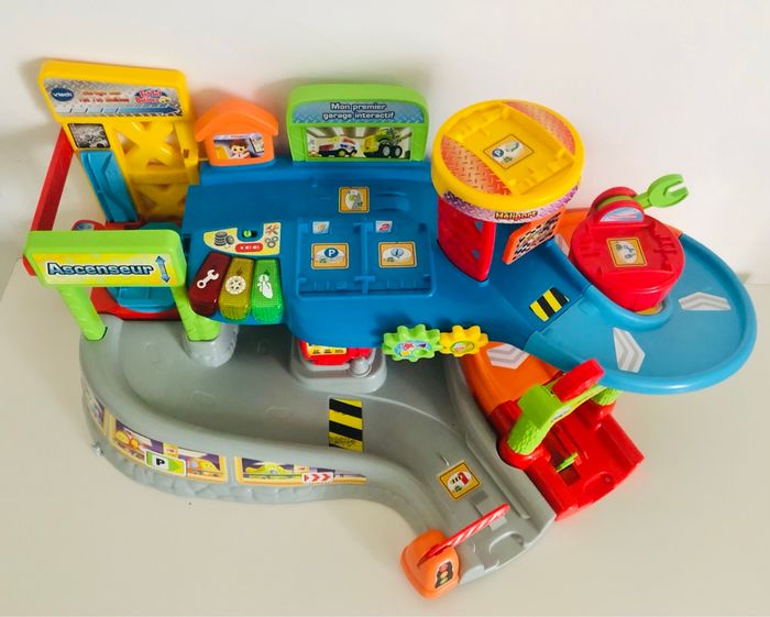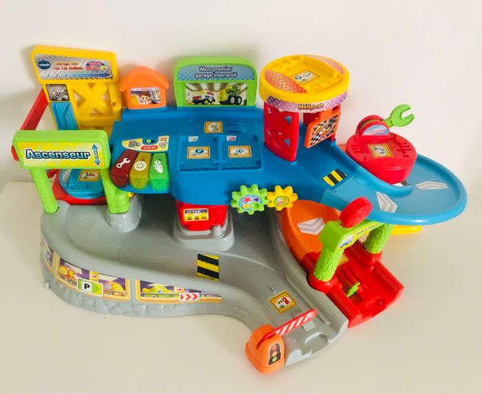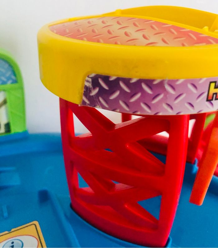Je vends un garage interactif Tut Tut Bolides, en très bon état excepté trois autocollants qui ne sont pas en parfait état et petite marque blanche sur le toboggan ( voir photos).