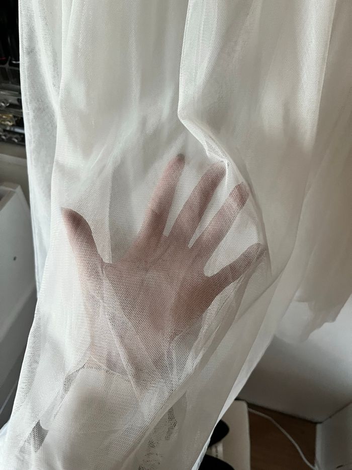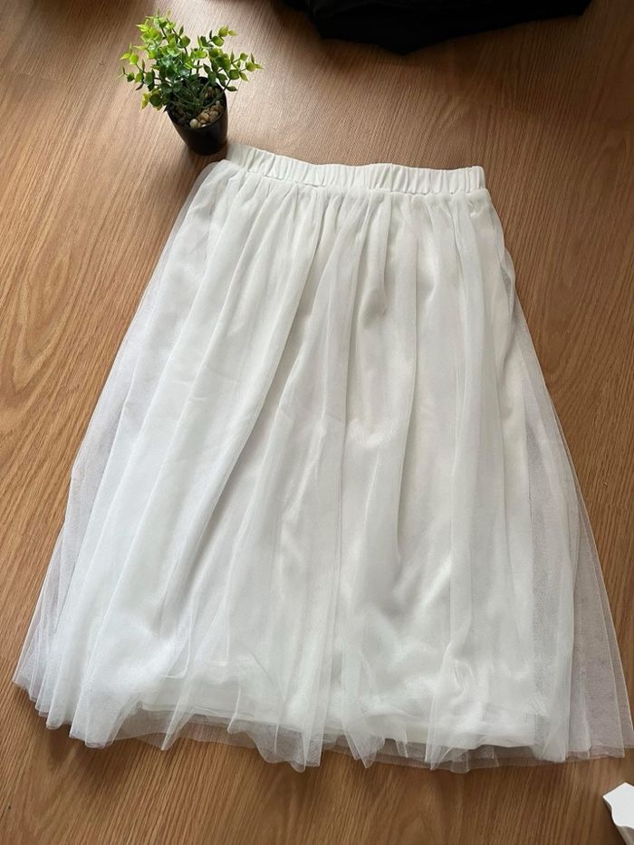 〰️ Jupe mi longue, blanche, doublée, retombé tulle