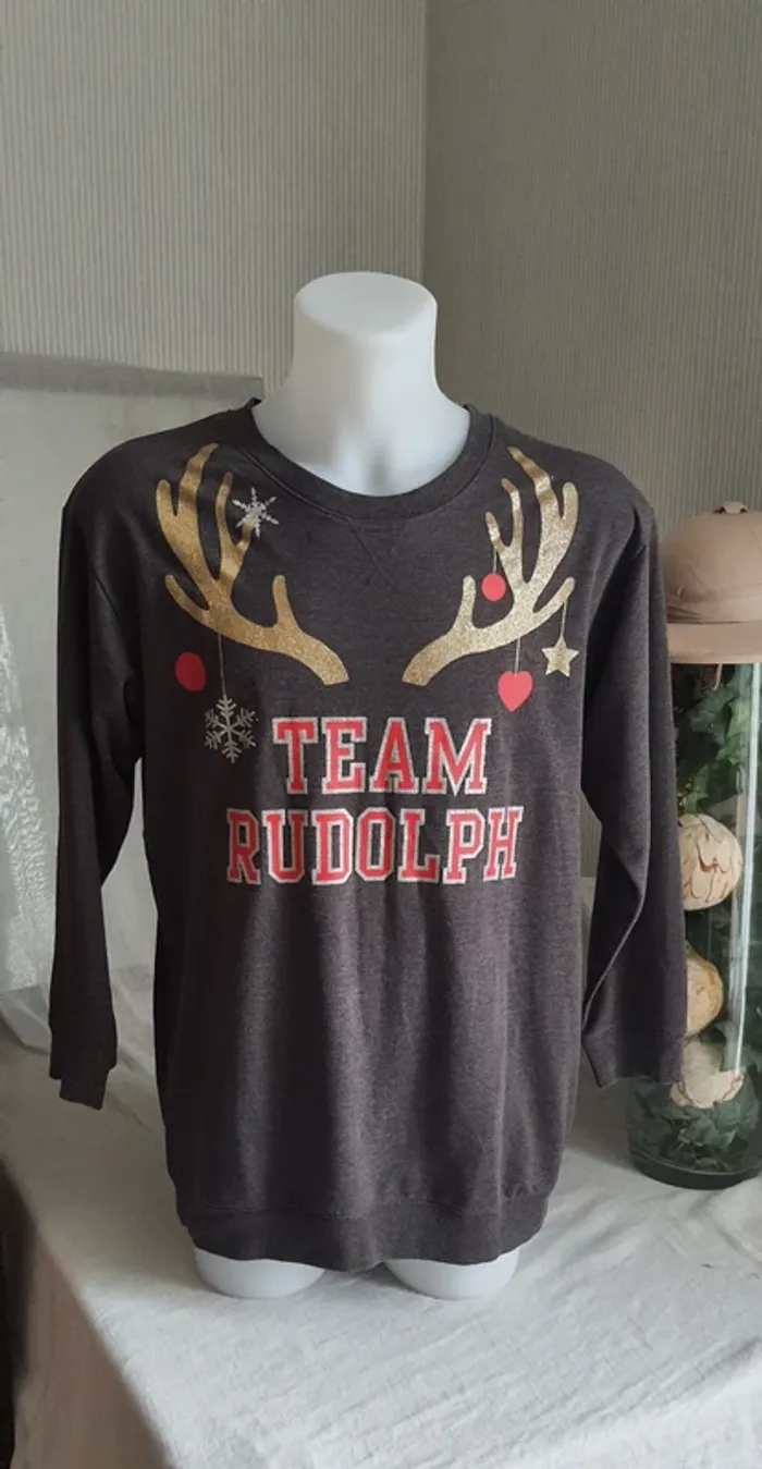 Sweat mixte, pull de Noel "H&M" "team Rudolph" taille M - photo numéro 1