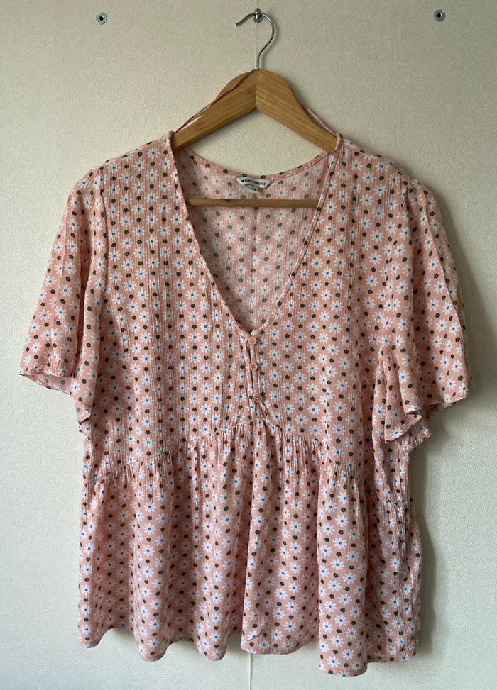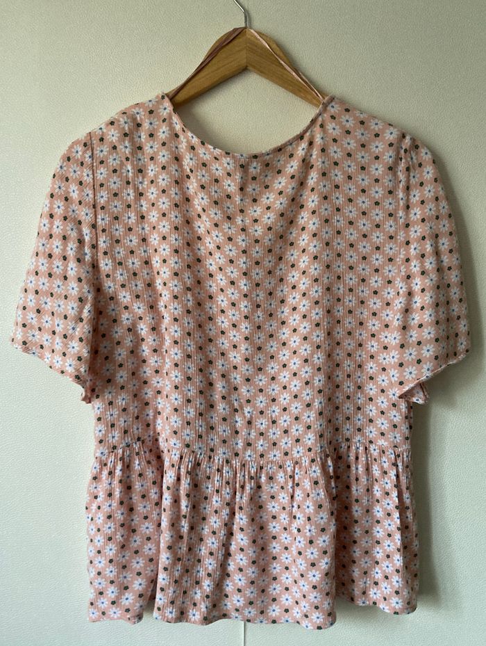 chemise blouse péplum col V imprimé fleuri