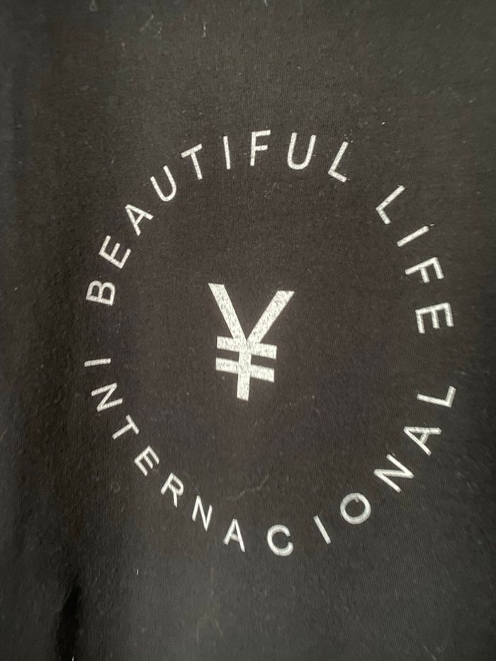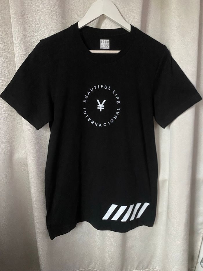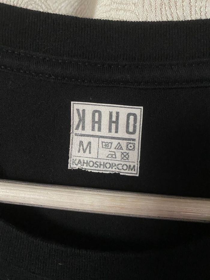 T-shirt noir Kaho M beautiful Life internacional Je n'ai trouvé aucune étiquette de composition mais probablement 100% coton Carrure 41 cm Aisselle à aisselle 49 cm Longueur 74 cm