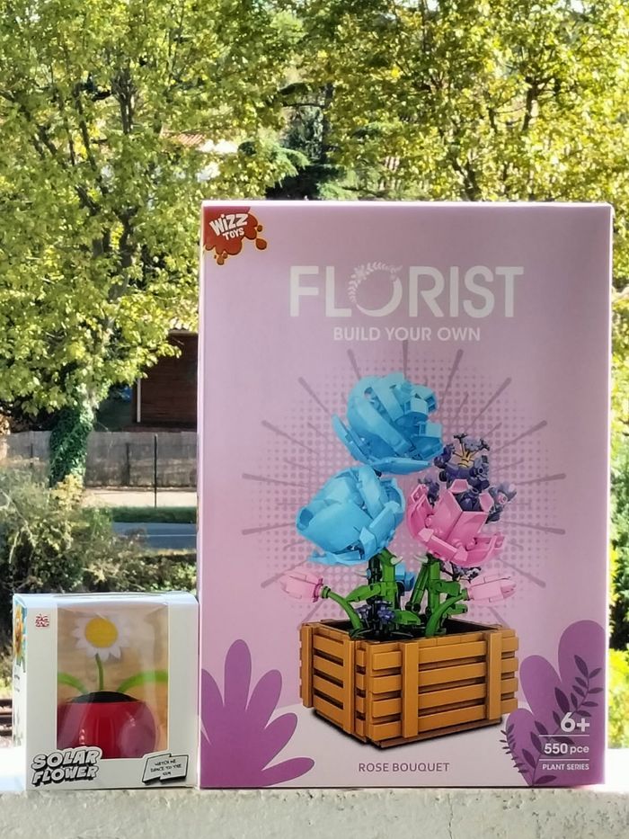 PACK REGROUPÉ. WIZZ-TOYS / SOLAR FLOWER. Egayez votre intérieur avec la Composition florale Les Roses et La Fleur Dansante !.. - SET FLORIST RÉF/ 548227- 550 PIÈCES. DÈS 7 ANS. Construisez votre propre Composition florale et votre Pot. Ce Set comprend diverses pièces à construire de différentes couleurs vives pour créer une belle Composition de Roses. Ce modèle détaillé présente des pétales et des tiges de Roses réalistes qui sont présentes dans un Pot effet bois. Une fois les 550 pièces assemblées la Composition florale mesure 26 cm de haut . - FLEUR DANSANTE SOLAIRE - Ce jouet solaire en forme de fleur dansante "Tournesol" ne nécessite aucune batterie ,mais est alimenté par l'énergie solaire. Lorsque vous recevez assez de lumière du soleil, le Tournesol danse et se secoue automatiquement. Cette Fleur solaire en forme de Tournesol ajoute du plaisir à une décoration de maison, du bureau et même sur le tableau de bord de votre voiture ! Dimensions : 10X10 Cm. PACK À 18€ Un PACK original, une belle idée pour un Cadeau d'anniversaire ou autre occasion spéciale.