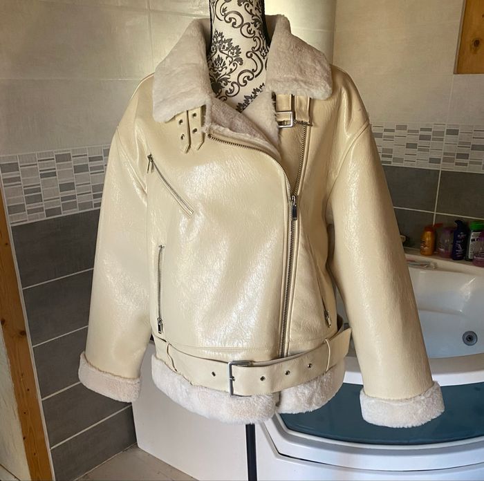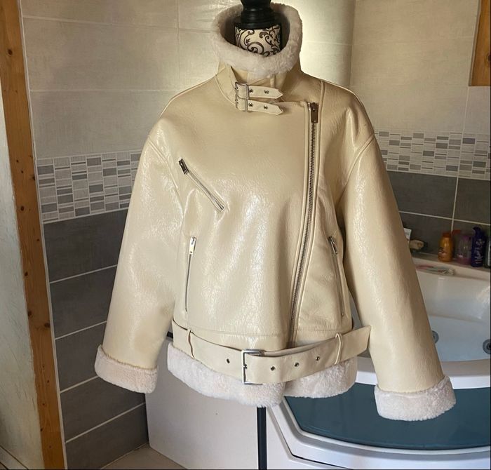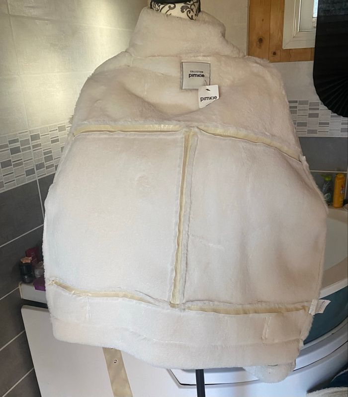 Très joli blouson femme Crème Entièrement fourré 2 poches avec ceinture Col qui peut se fermer Fermeture éclair Chaud