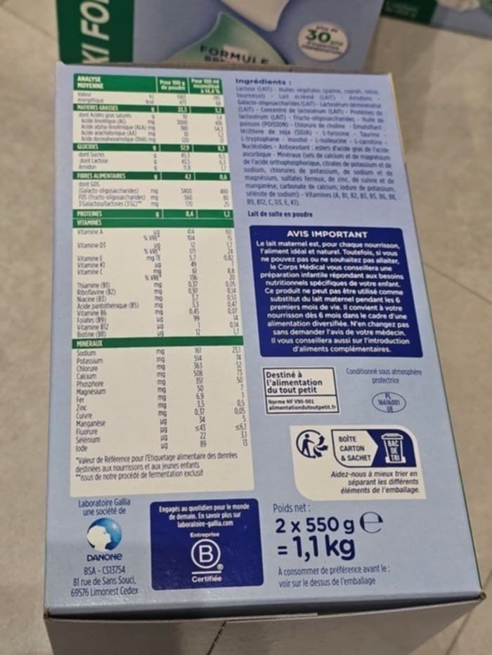 Lot de 4 boîtes Gallia Galliagest Premium 2 – Maxi Format 1,1 kg