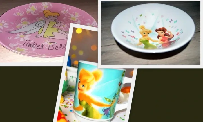 Je vends un adorable lot de vaisselle Fée Clochette, idéal pour une petite fan de Disney ou un collectionneur.