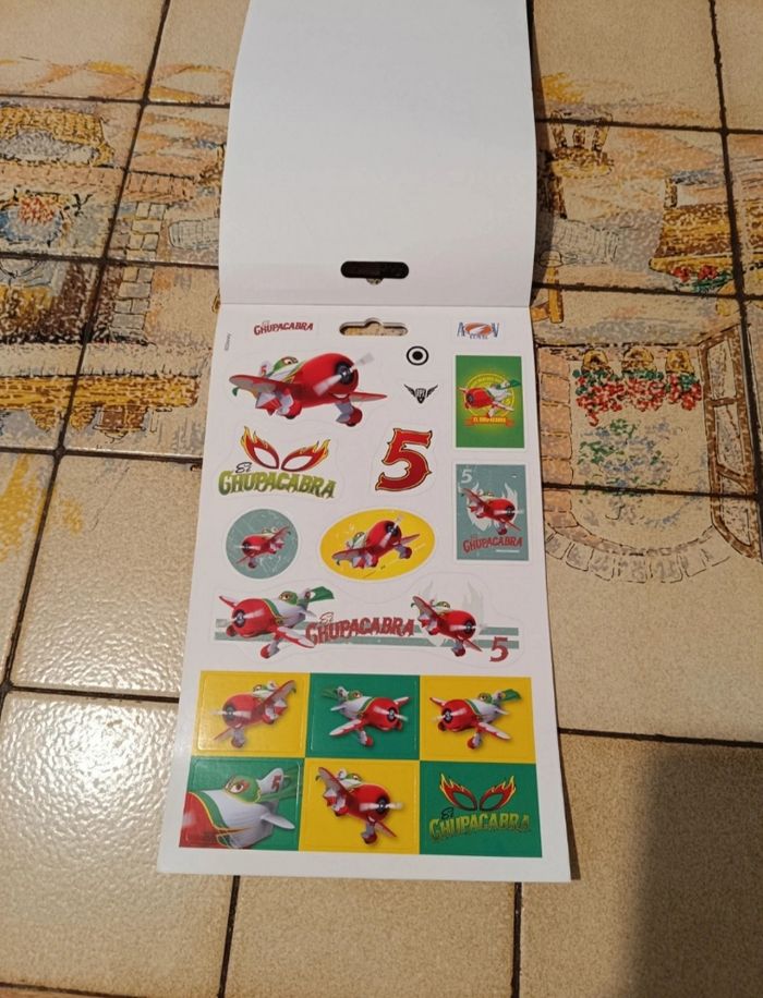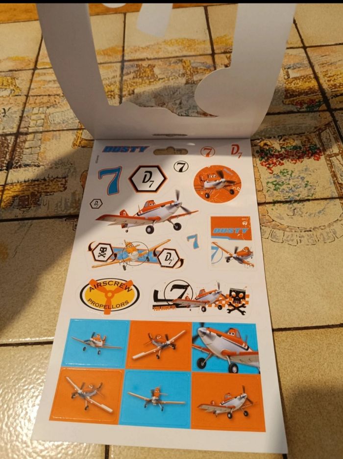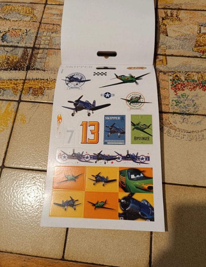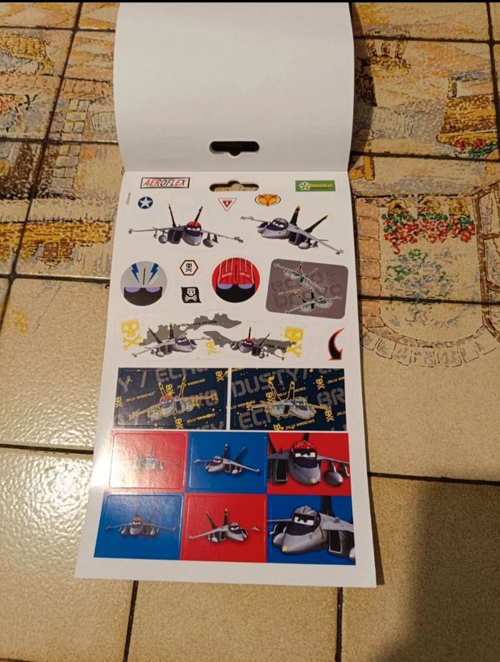 Note : Le livret contient plusieurs pages d'autocollants variés (avions, logos, personnages).