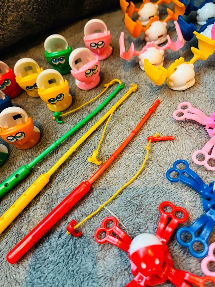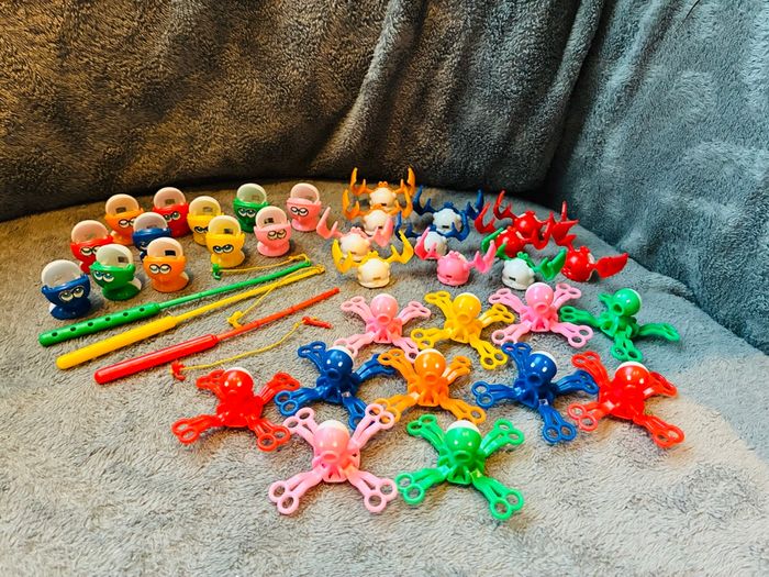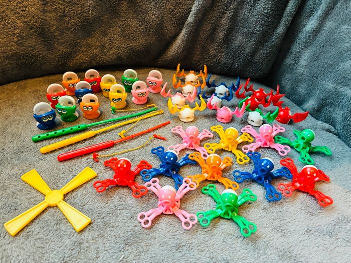 Lot vintage de personnages / figurines pour Pêche à la ligne de mon enfance (la base ne fonctionne plus je revends les accessoires) Crabes x 11 Pieuvres x 11 Poissons X 12 3 Cannes à pêches dont l’une est cassée Ailes de moulin Je donne un crabe et une pieuvre cassée #stefetjuju51jeux maison non fumeurs bien d’autres choses dans mon dressing de nouveaux articles très régulièrement nombreux # dans mon profil pour faciliter vos recherches merci pour votre visite et belle journée ☺️ #pechealaligne #vintage