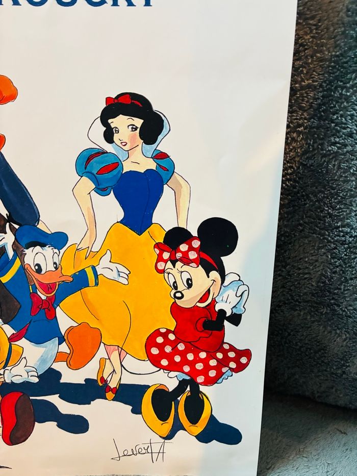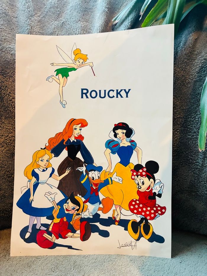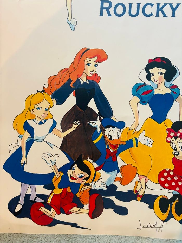 Affiche Roucky avec différents personnages Disney : Mickey , Alice , clochette, la Belle au bois dormant , Blanche neige, Donald, Pinocchio Idéal Fan-Art Vintage : date des 90’s Défaut sur l’arrière avec traces de scotch (photos à l’appui) Auteur Levert Format A4 #stefetjuju51disney #stefetjuju51divers maison non fumeurs bien d’autres choses dans mon dressing de nouveaux articles très régulièrement nombreux # dans mon profil pour faciliter vos recherches merci pour votre visite et belle journée ☺️ #affiche #vintage #disney #fanart