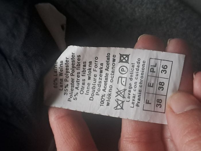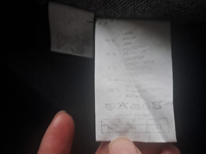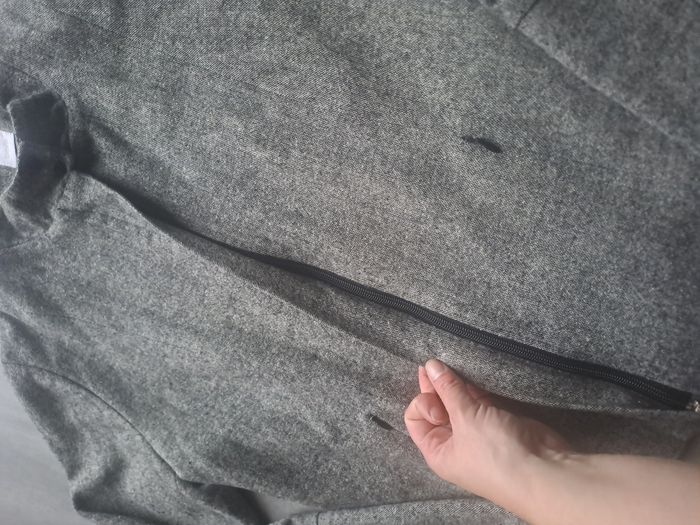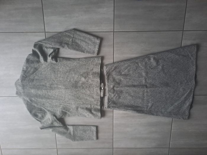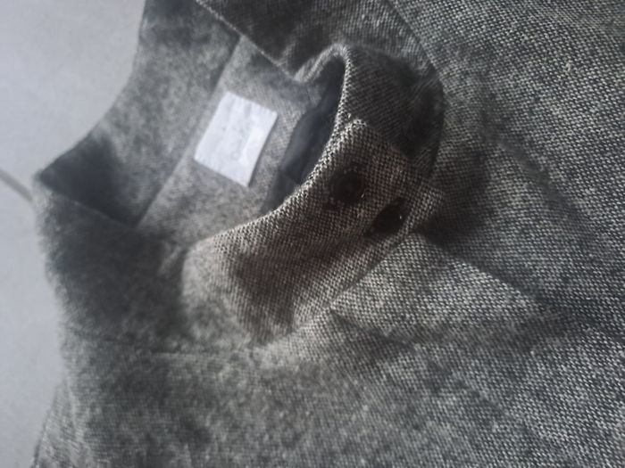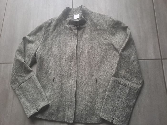 Composé d'une veste manches longues, attache avec fermeture éclair et 2 petits boutons au col, 2 poches fermant , fermeture éclair aux manches, Taille 38