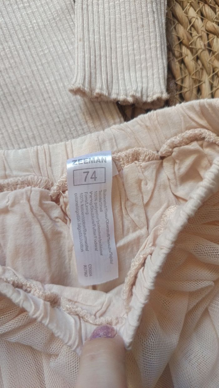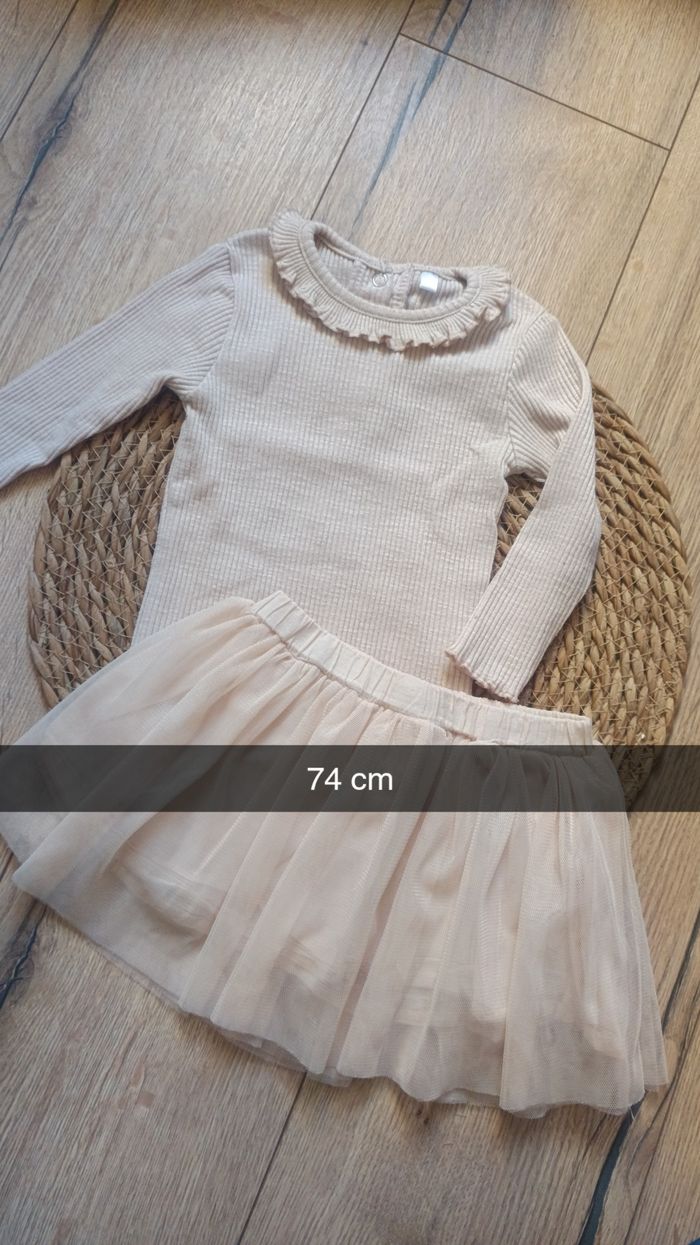 Ensemble beige haut côtelé et jupe tulle taille 74 cm