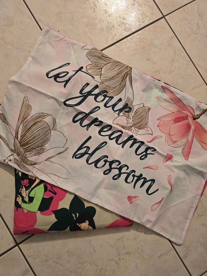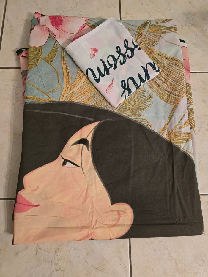 Neuve (non portée) 🩷⚘️👌👌housse de couette reversible et taie d oreiller disney MULAN fille (1 place).🩷⚘️👌👌