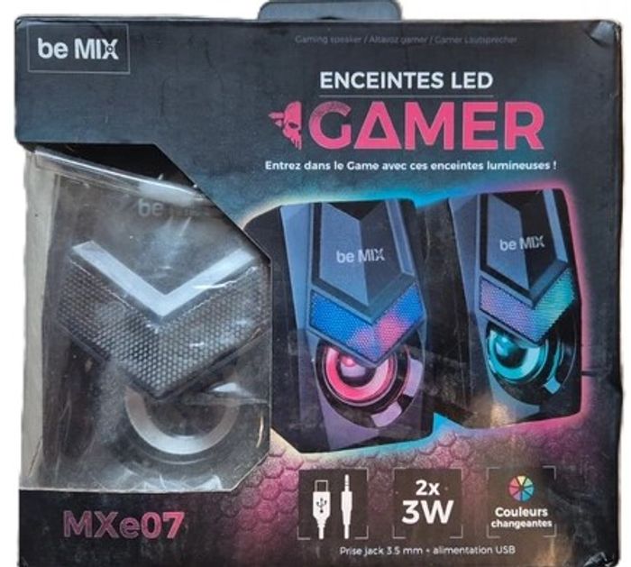 Entrez dans le game avec cette enceinte gamer lumineuse Be Mix neuve, jamais utilisée ! Parfaite pour les soirées gaming ou pour offrir un cadeau high-tech qui fera sensation sous le sapin 🌟.