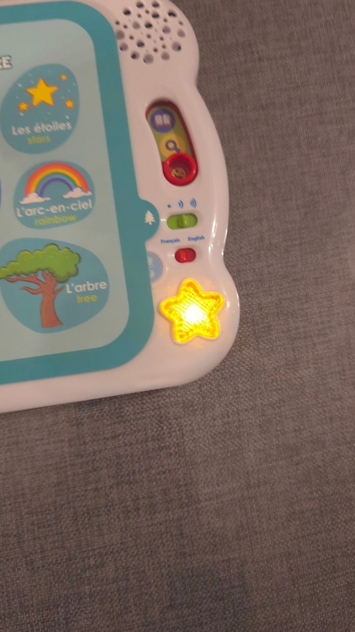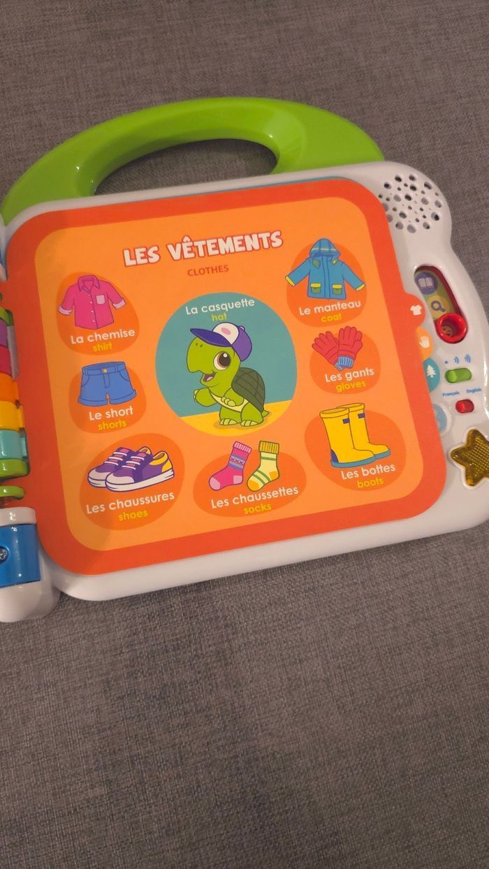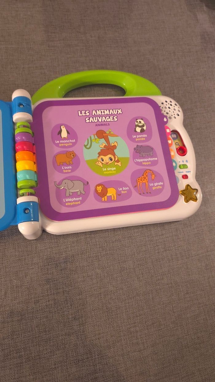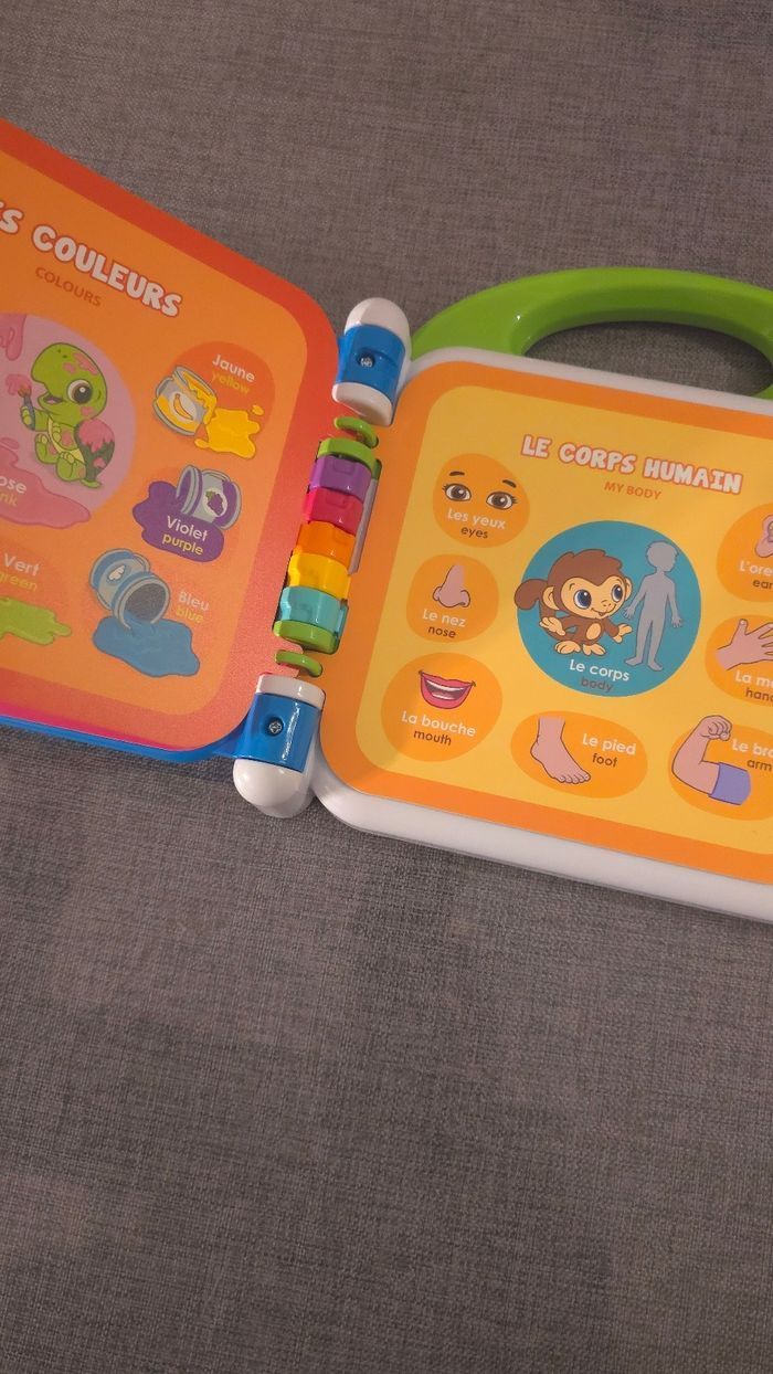 Prix ferme Etat neuf, n interresse pas mon enfant. Un imagier parlant et bilingue pour les plus petits Un imagier interactif parlant qui permet aux plus petits de commencer l'apprentissage de l'anglais en compagnie de petits personnages "les petits écoliers" qui l'accompagnent tout au long du livre. Apprentissages Vocabulaire français / anglais Découvertes par thème : animaux, aliments, couleurs, parties du corps,... 3 modes de jeu : Vocabulaire, Découvertes et Sons amusants.
