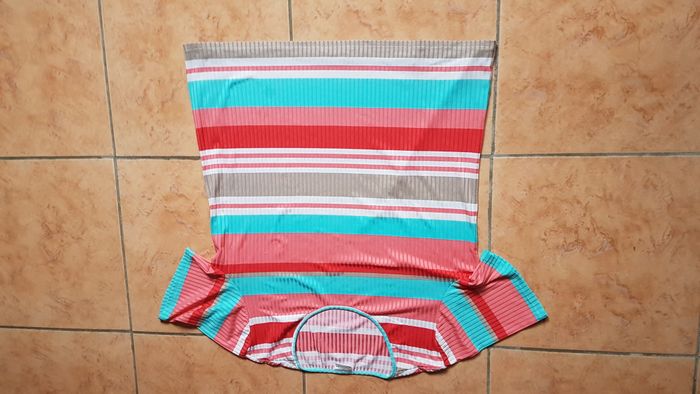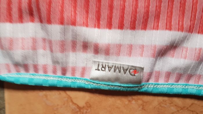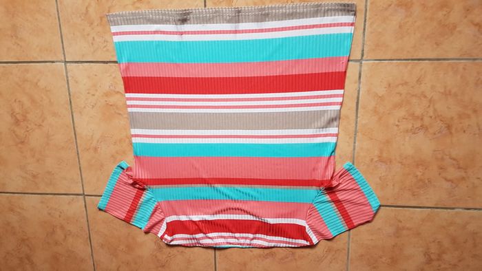 T shirt été femme Plus étiquette correspond au 44 A rayures vertes, roses, rouges, grises et blanches Manches courtes Col rond Léger Marque Damart