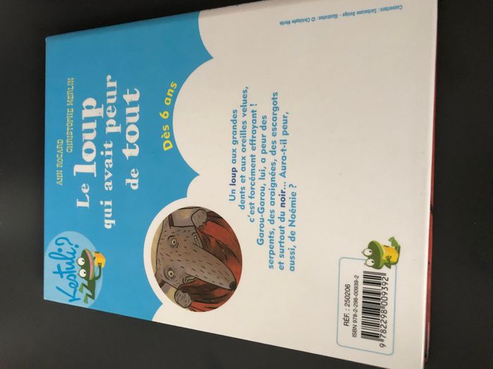 Livre Le loup qui avait peur de tout Ann Rocard Dès 6 ans Un loup aux grandes dents et aux oreilles velues, c'est forcément effrayant! Garou-Garou, lui, a peur des serpents, des araignées, des escargots et surtout du noir... Aura-t-il peur, aussi, de Noémie?