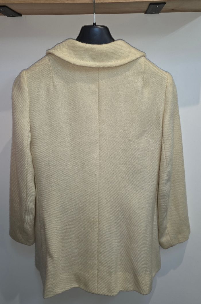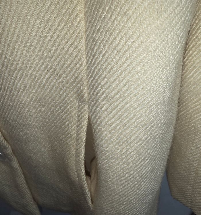Manteau couleur creme/jaune clair. Marque inconnu, pas de taille indiqué, correspond a un 40. Légers defauts ( voir photos). Remises sur lots activé ✅️ De plus, moins de frais de livraison 🪙📦 Envois rapide et soigné ! 🚚