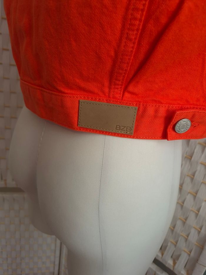 #veste #vesteenjean #gilet #giletenjean #vestesansmanches #bzb #bizzbee #taillem #vesteorange #cropped #croptop #modetendance #lookdujour #tenuedete #printemps #modefemme #fashionaddict