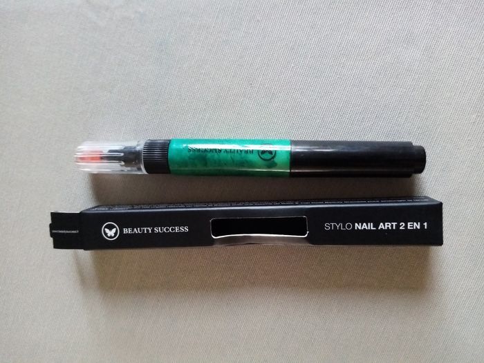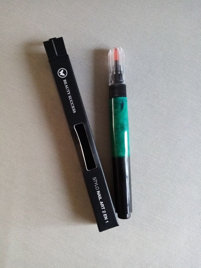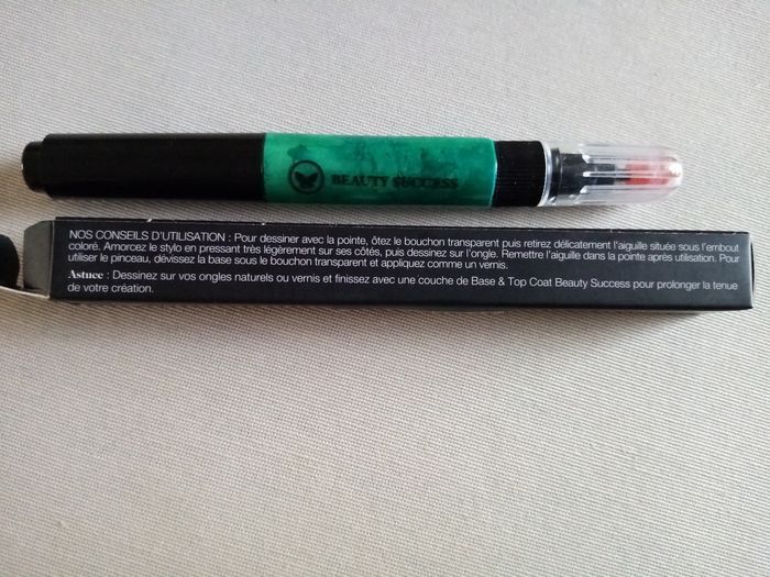 Stylo Nail Art 2en 1 Pour dessiner, créer et personnaliser les ongles Pinceau fin et pointe haute-précision Beauty Success Vert (marbré) 10 ml Neuf, jamais utilisé