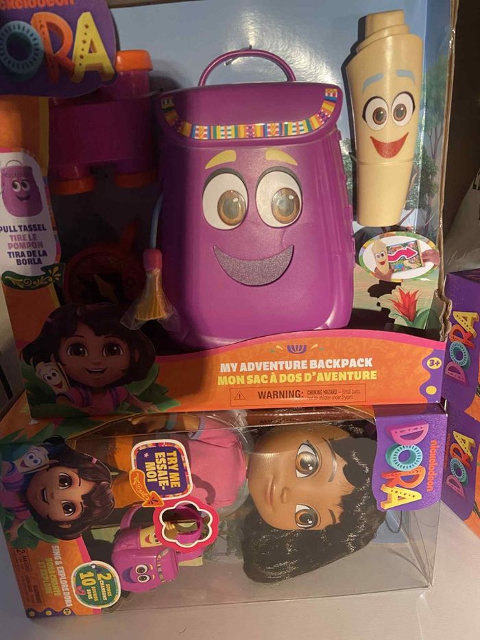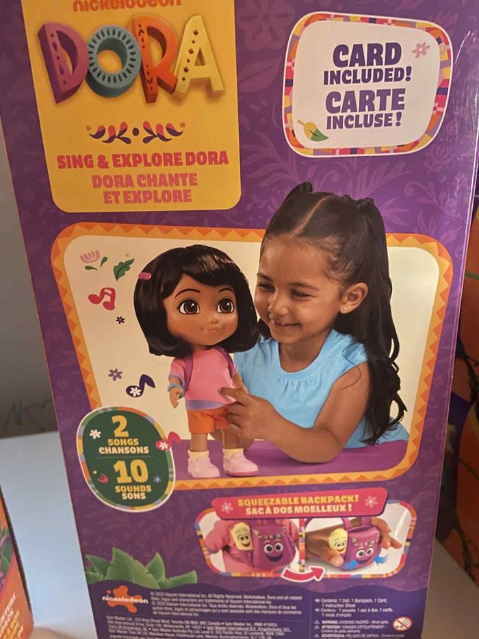 Bonjour je vend un lot de dora une groupe poupée qui parle qui chante et un sac à dos avec ses accessoires neuf emballé
