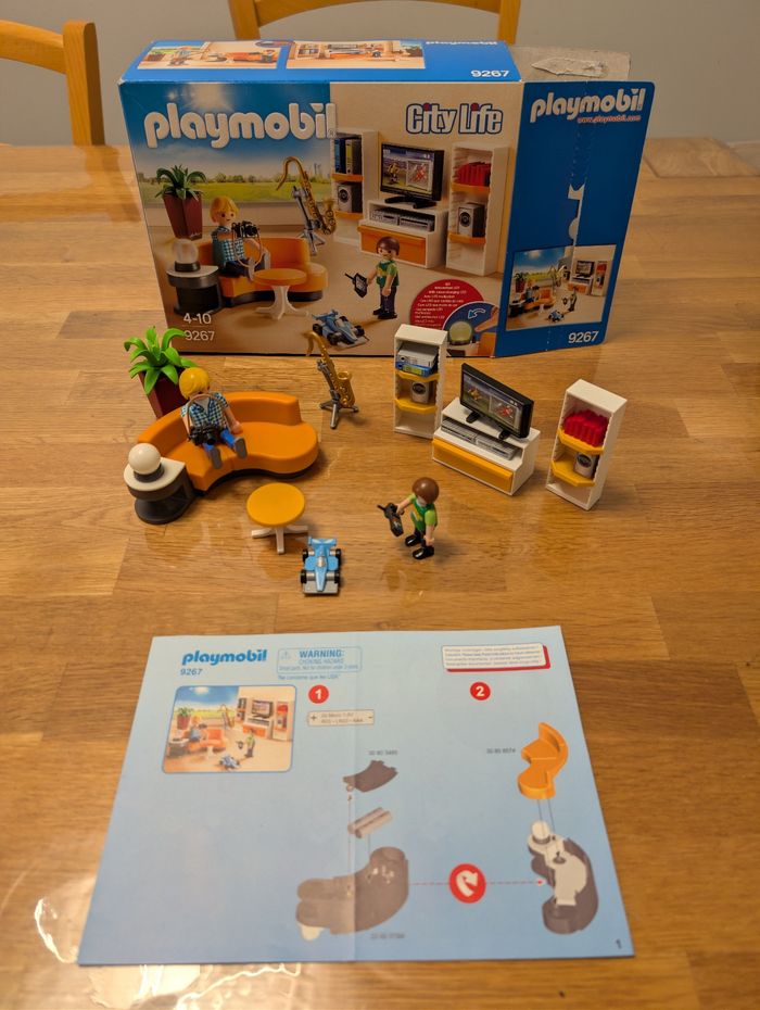 Salon City Life 9267 Playmobil complet Avec boîte et notice, la boîte peut être refermée comme à l'achat, complet et fonctionnel.