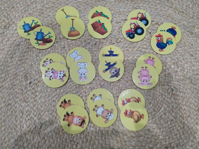 Vends jeu de mémoire, memory game, pour jeunes enfants, Les animaux de la ferme, de marque inconnue, composé de 24 pions. Jeu à partir de 3 ans. Jeu complet. En Neuf sans étiquette. N'hésitez pas à regarder notre dressing pour regrouper vos achats et réduire les frais de port. Nombreuses tailles encore disponibles en 4,5,6,8 et 10 ans pour fille. Mais également pour garçon en taille 4,5,6,8, 10 et 12 ans. Nombreux jeux, jeux vintage et livres pour enfants également disponibles !