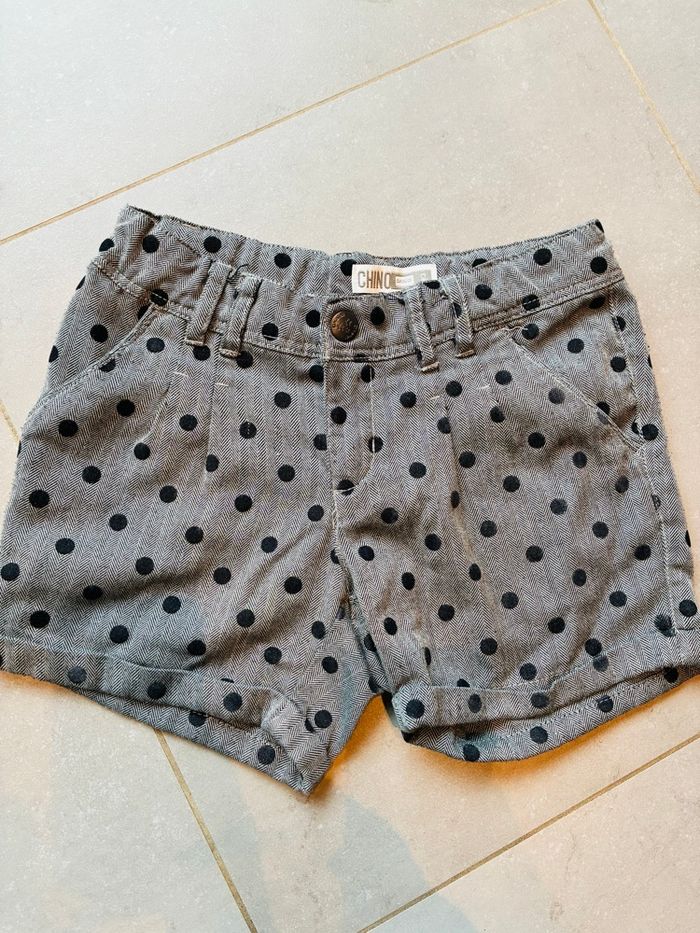 Un superbe short gris et noir à pois : chino okaidi , taille réglable
