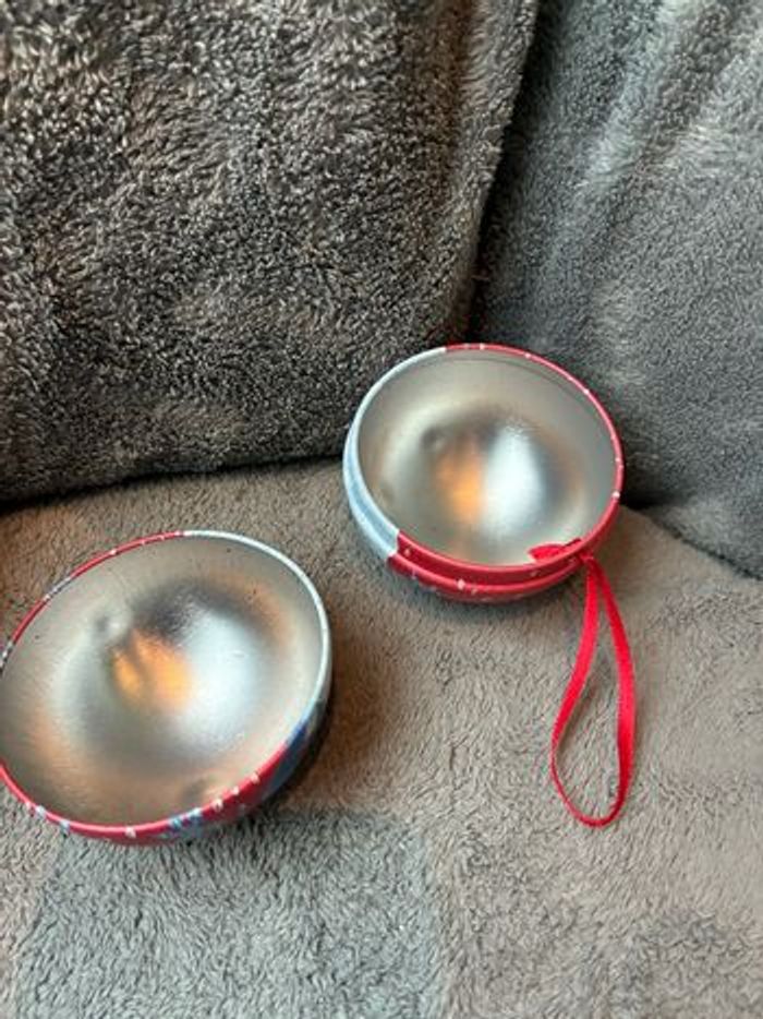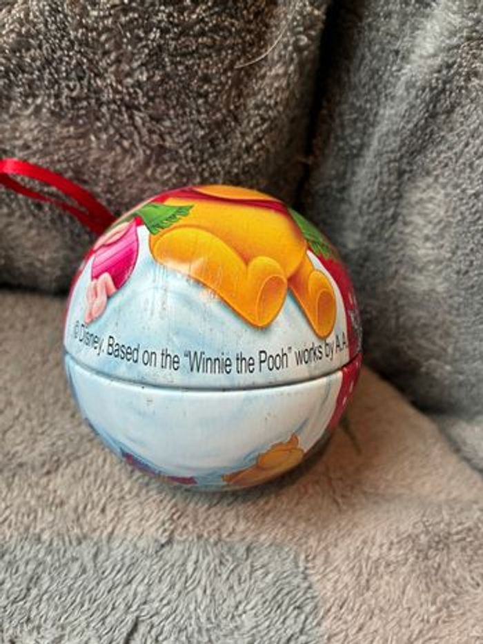 * 2 boules Disney : une winnie l’ourson avec bourriquet et porcinet , en métal et s’ouvre, quelques marques de frottements