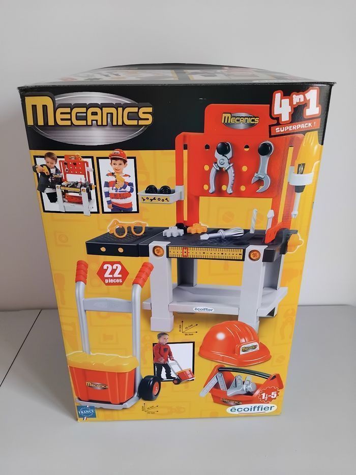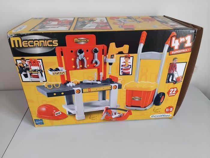 🔧🪛 Vends lot de Jouets pour Enfants: Etabli de Bricolage, avec Caisse à Outils et Diable pour la transporter . Etabli pour enfants dès 18 mois. Dimensions monté : H61.3 x L56.5 x P25.7 cm Vendu avec Boite d'origine, idéale pour offrir en cadeau. Set quasiment Complet, manque uniquement 2 fiches pour la perceuses. 👍 Jouets de Seconde Main, traces d'usage mais ensemble en Bon Etat et propre, prêt à jouer. ❗️Important❗️Colis Volumineux ❗️ NE PAS GROUPER AVEC D'AUTRES ARTICLES ❗️ et choisir une livraison en point relais physique, ne rentre pas en locker. ❗️ 📦 Expédié en Points Relais. ✅️ Economisez -20% sur les Frais de Port Dépôt des colis au point relais du lundi au samedi. Rèf. Annonce : ETABLI - A376 Etabli de Bricolage ECOIFFIER