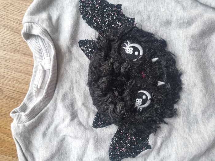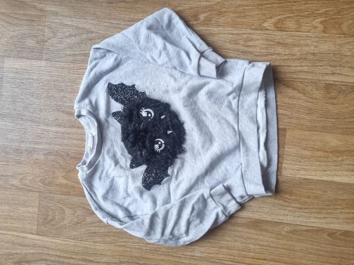 Pull gris motif chauve souris H&M 3-4 ans 85% coton 15% polyester
