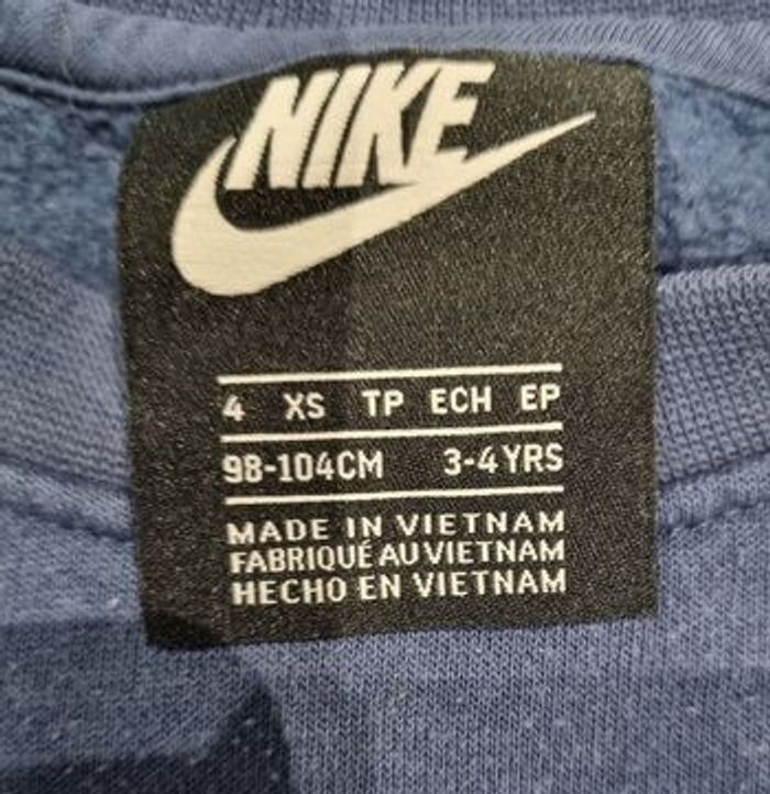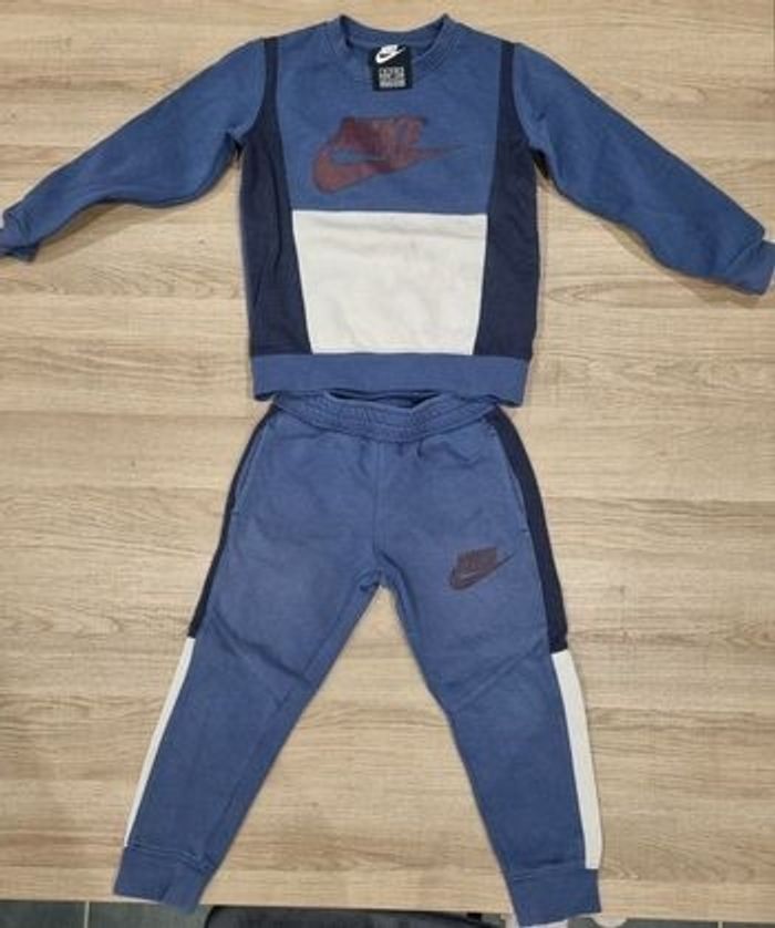 Tres beau ensemble de survetement nike taille 3-4 ans couleur bleu juste une légère tâche qui se voit à peine voir photo sinon très bonne etat