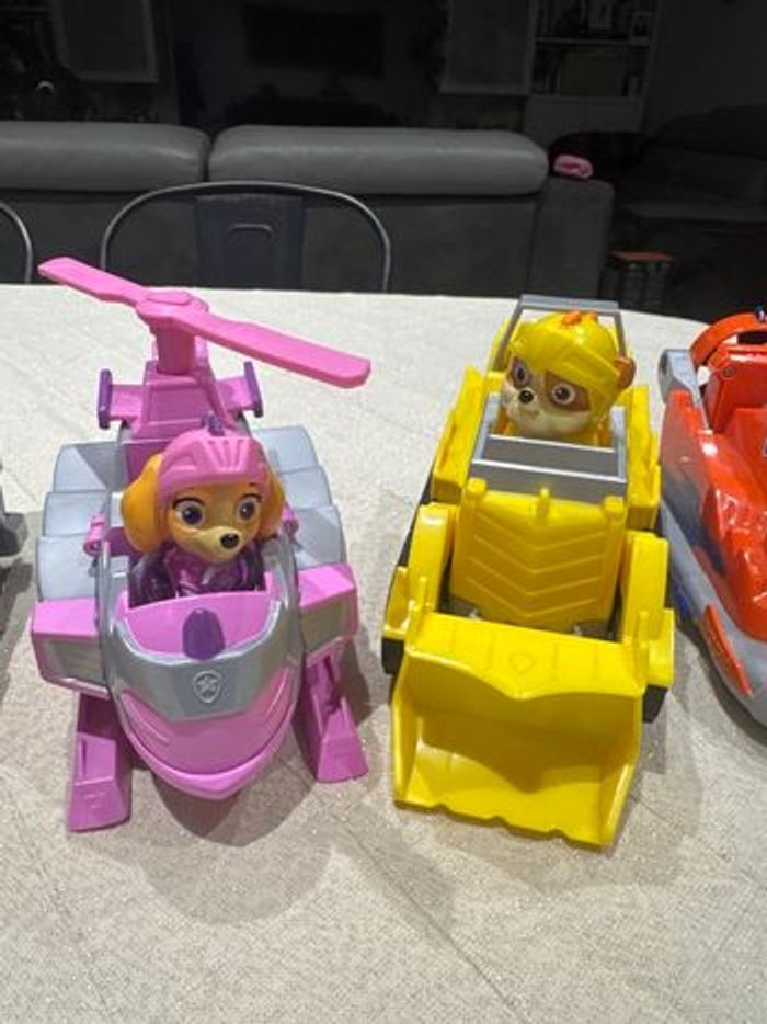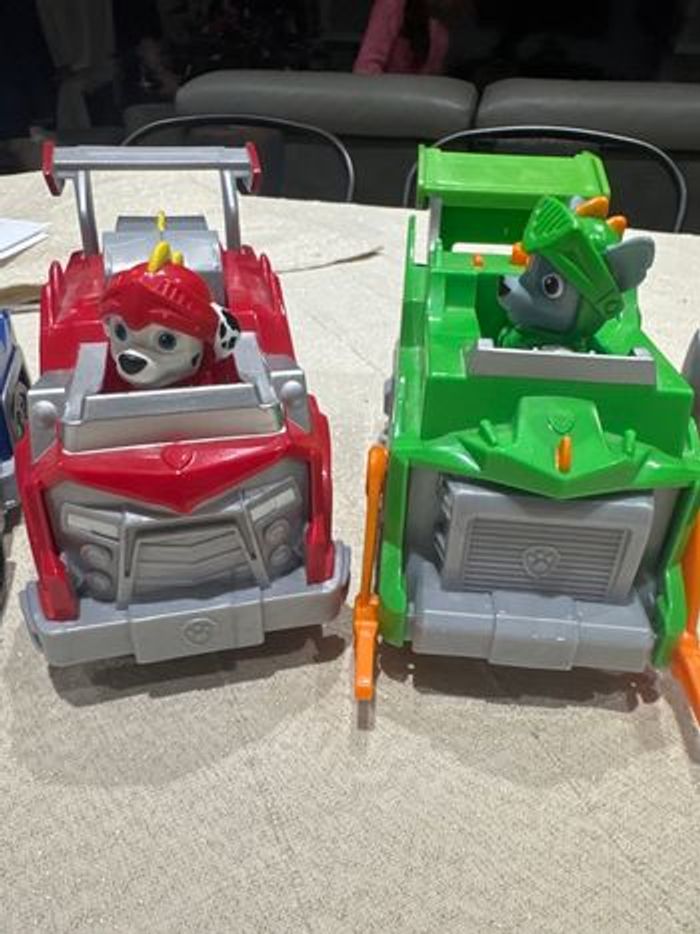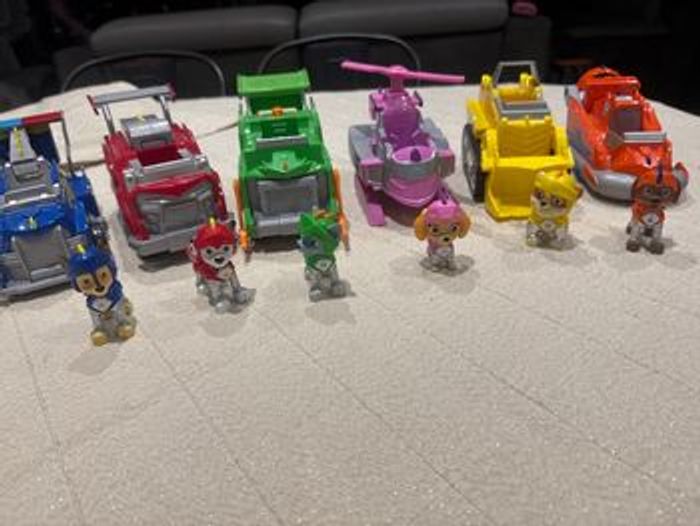Très beau lot de voitures (20cm) de l’équipe de la pat patrouille Prix d’achat individuel 20€ Prix du lot complet avec envoi avant Noël : 75€ et j’offre 1 livre pat patrouille avec