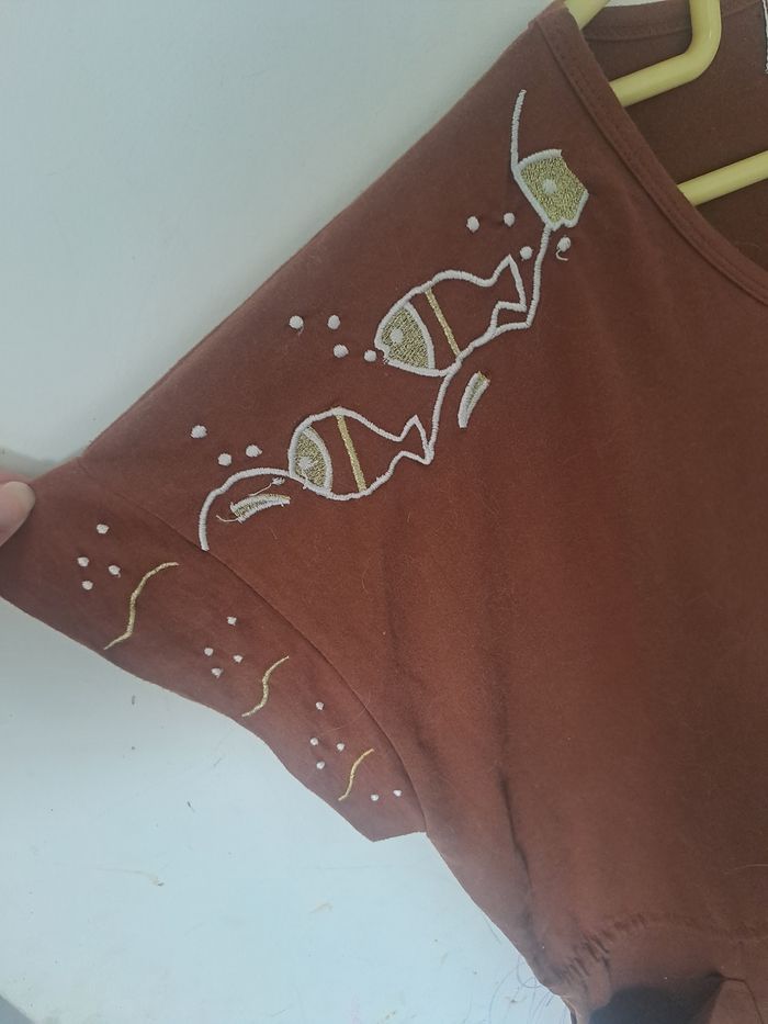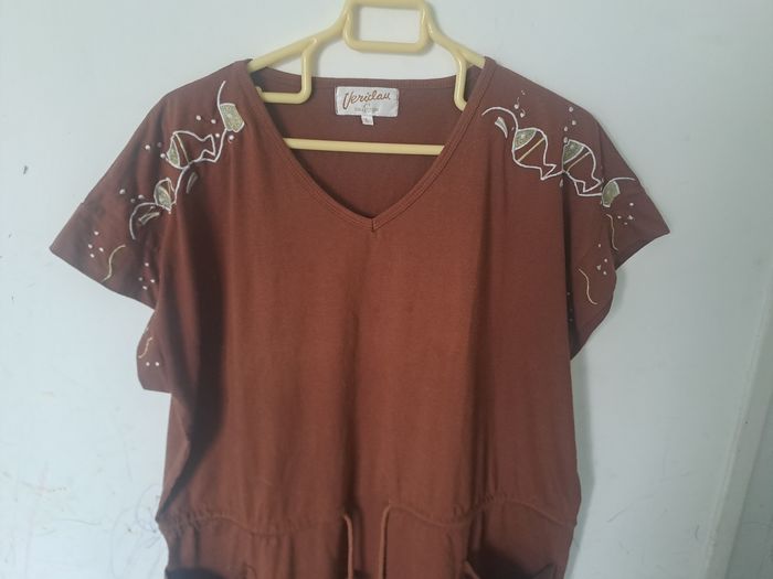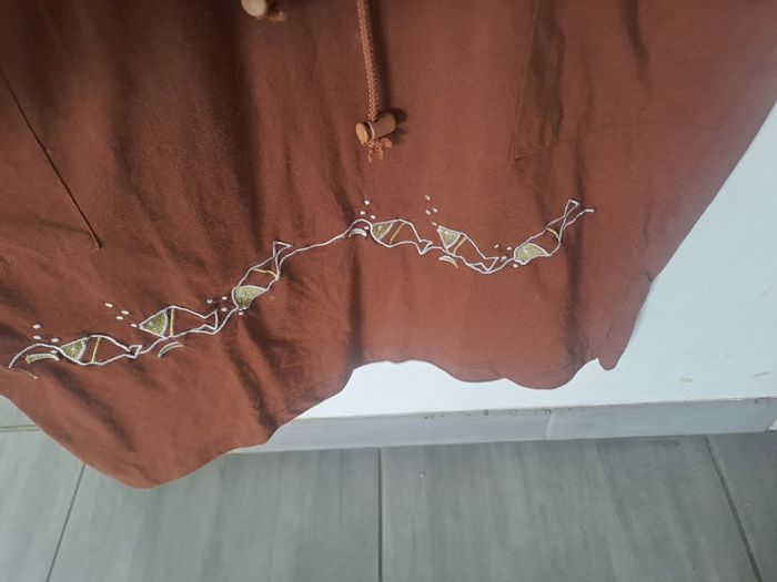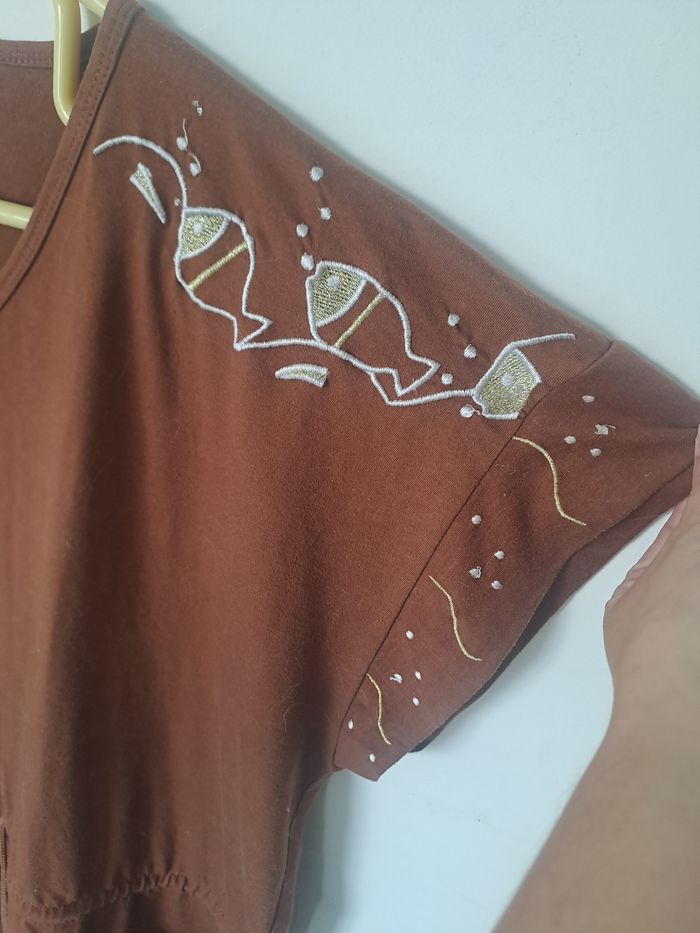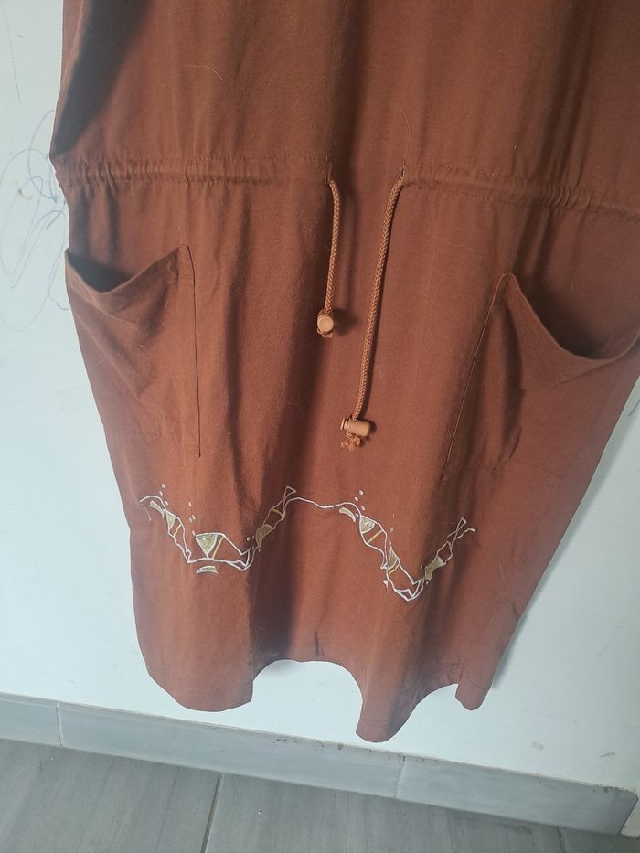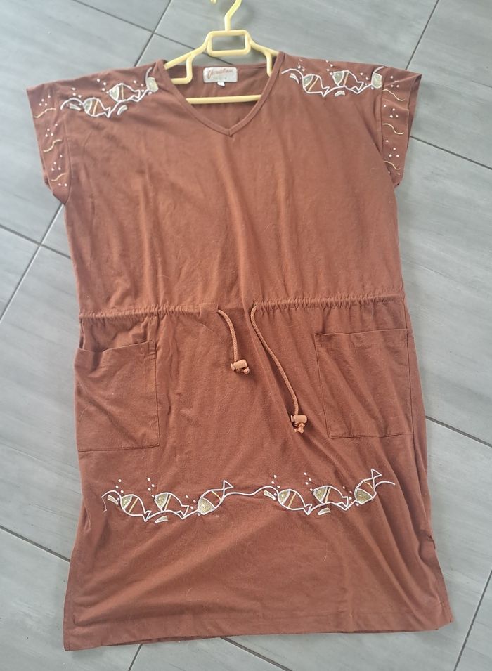 Robe Original marron broderie poissons Taille L
