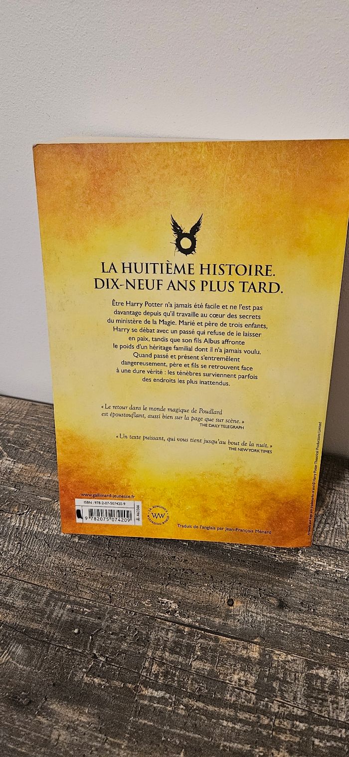 Plonge dans une nouvelle histoire dans l’univers de Harry Potter, 19 ans après la fin de la saga originale ! Harry est désormais employé au Ministère de la Magie, marié à Ginny et père de trois enfants. Son plus jeune fils, Albus Severus, peine à vivre avec la réputation de sa famille. Lorsque le passé et le présent s’entremêlent, père et fils doivent affronter des forces mystérieuses et des choix qui pourraient changer le futur.