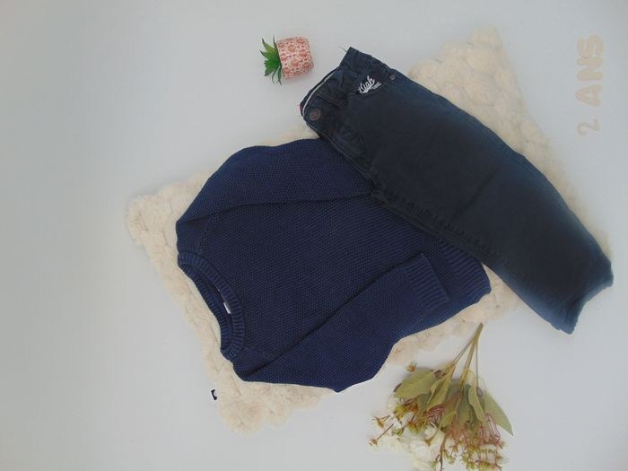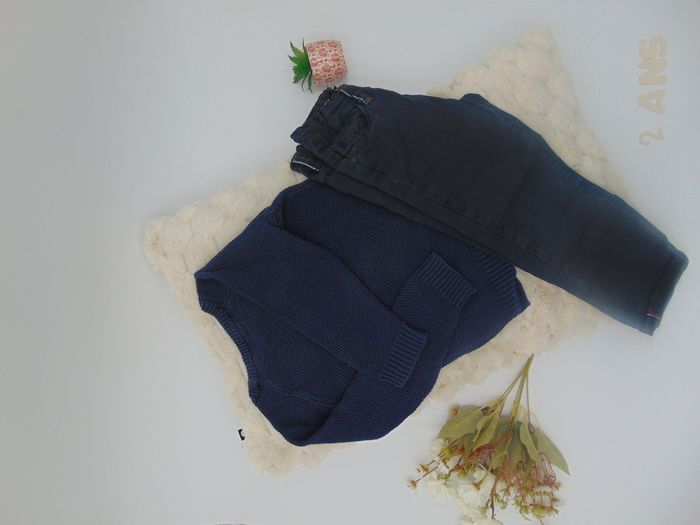 - Pantalon et pull - Pantalon couleur bleu marine marque Orchestra - Slim - Taille ajustable - Pull couleur bleu marine marque Primark - Aucune tâche ni trou