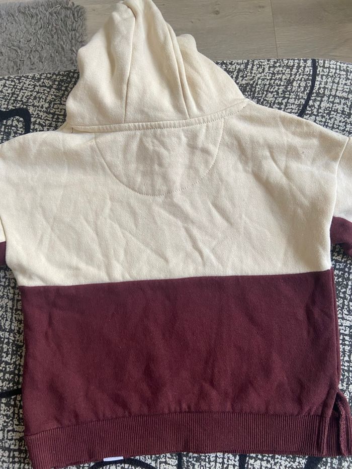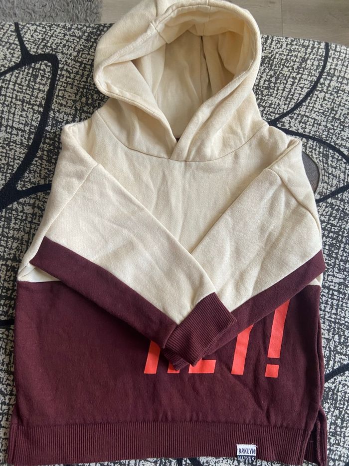 Sweat-shirt molletonné à capuche pour enfant, en très bon état. Taille 1,5/2ans (92cm). Porté très peu. Matière : 60% coton et 40% polyester