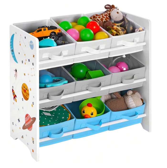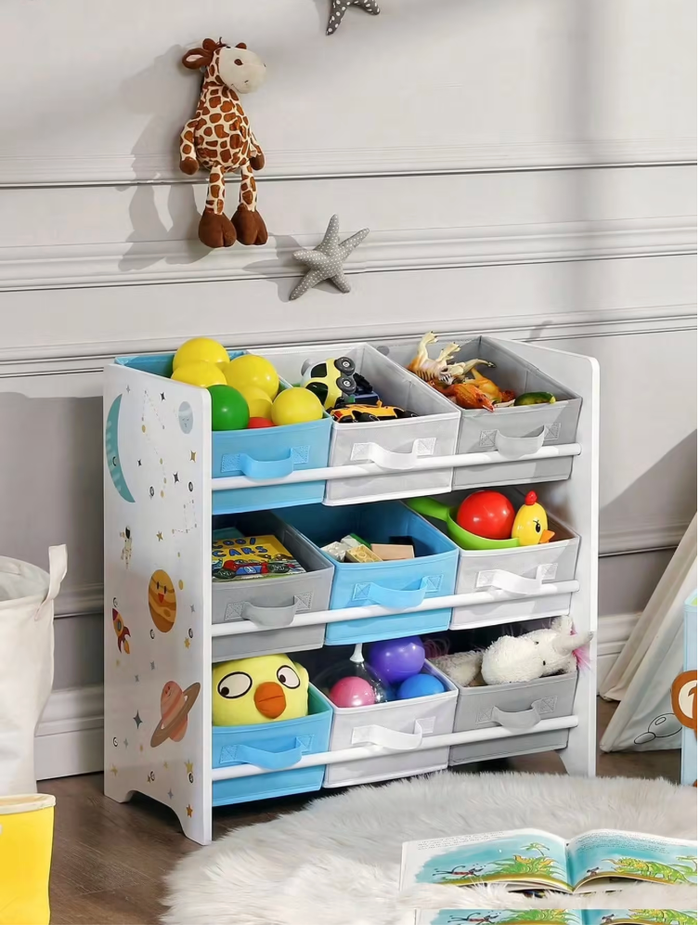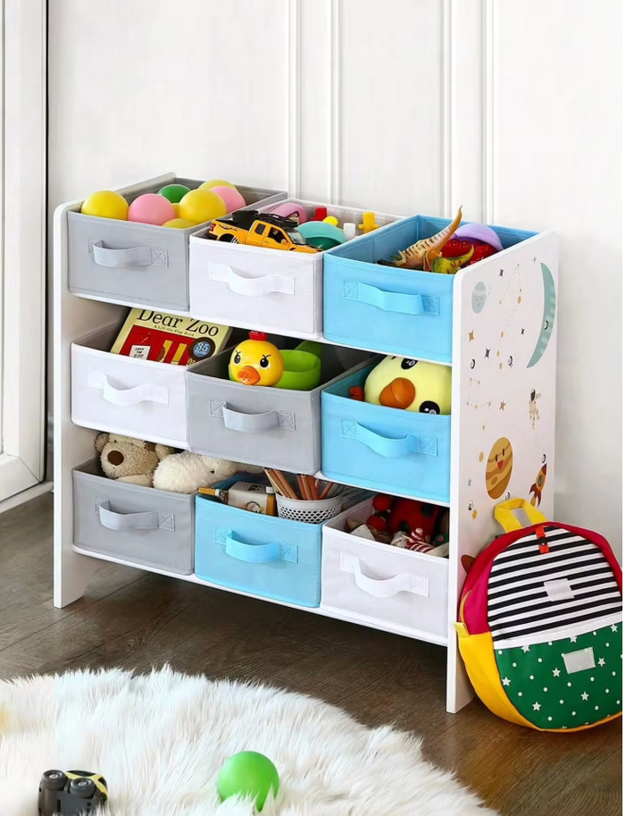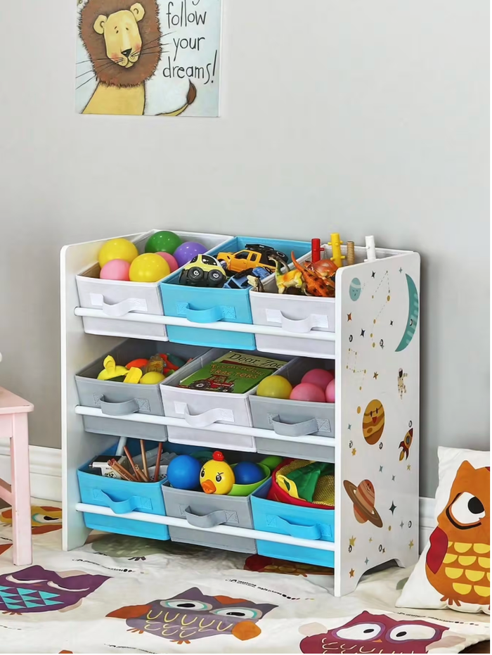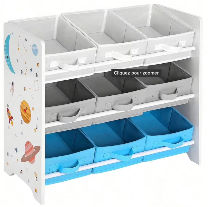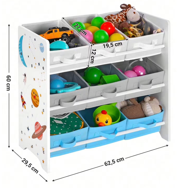 Bonjour, Je vends une étagère/meuble de rangement pour enfants de chez Songmics. L'ensemble est neuf dans son carton Livré avec 9 boites en tissu Dimensions : 62,5 x 29,5 x 60 cm (L x l x H) Poids : 5,5 kg Pour toute question supplementaire, n'hésitez pas à revenir vers moi Cordialement