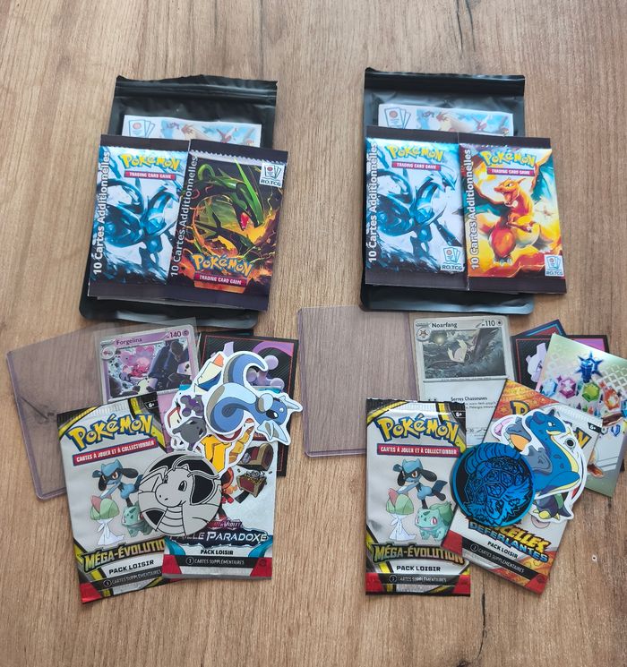 Promo : Offre de Noël chaque pack mystère à 8€ jusqu'au 31 décembre !!! 🔥 Mystery Pack Pokémon 8€ ( plusieurs packs = faire offre ) Le pack qui transforme chaque ouverture en un moment unique ! Préparez-vous à vivre une expérience intense avec notre Mystery Pack Pokémon, rempli de surprises, de cartes rares et de possibilités incroyables. Chaque pack est soigneusement préparé pour offrir un maximum de plaisir… et peut-être même de véritables trésors ! --- 🎁 Ce que renferme votre Mystery Pack : 💥 2 Pockets Boosters RO.TCG (10 cartes FR de différentes extensions : EB/EV/ME) : 1 carte Énergie 8 cartes Communes / Unco / Reverse 1 carte Rare ou Ultra Rare ✨ Des God Packs se cachent parmi certains boosters… saurez-vous les trouver ? 💥 2 Boosters Loisirs JCC Pokémon De différentes extensions pour élargir votre collection. 💥 Accessoires exclusifs : 3 sleeves Pokémon 1 Top loader premium Et plein de surprises ajoutées spécialement pour vous ! --- ✨ Des bonus exclusifs cachés dans certains packs ! 🎁 Boosters supplémentaires FR & JPN à gagner dans des enveloppes Ticket Gold : 1 chance sur 25. ➡️ Chaque Mystery Pack est une chance d’obtenir encore PLUS que prévu ! --- 🤩 Pourquoi vous allez adorer ? Parce qu’ouvrir un Mystery Pack, c’est retrouver l’excitation du hasard, la magie de la découverte et le plaisir de tomber sur des cartes que vous n’attendiez pas. Un vrai moment collector. --- 🛒 Disponible en plusieurs options : Pack à l'unité ou par 2, 3 ou 5 👉 Plus vous en prenez, plus vous augmentez vos chances de tomber sur des bonus incroyables ! --- 📦 Dimensions du Mystery Pack : Longueur : 22,5 cm Largeur : 14,5 cm Hauteur : 3,5 cm