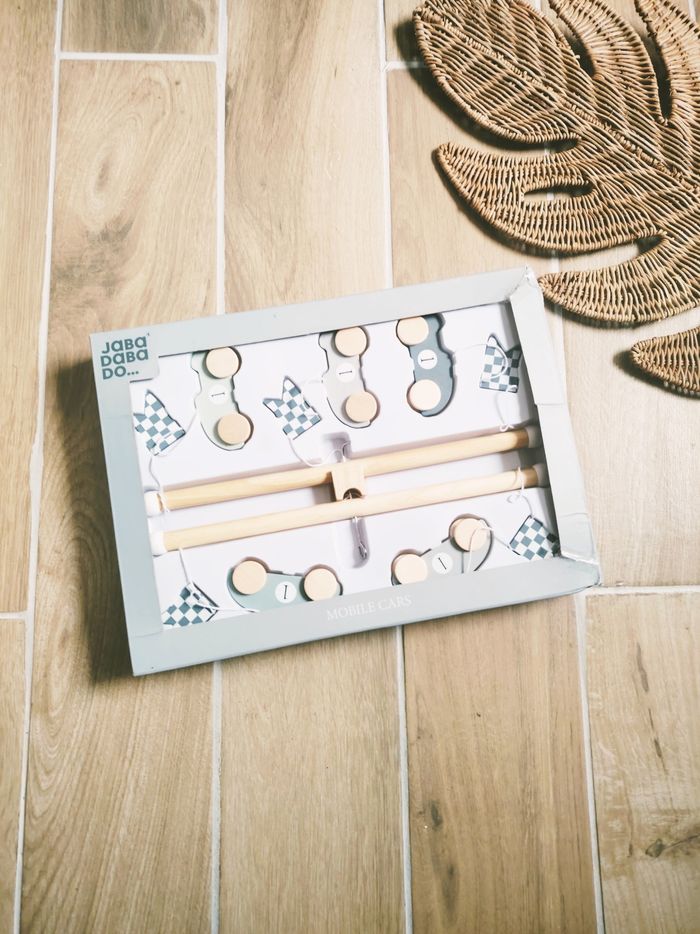 🚗Coffret mobile à suspendre avec voitures de courses en bois marque Jabadabado