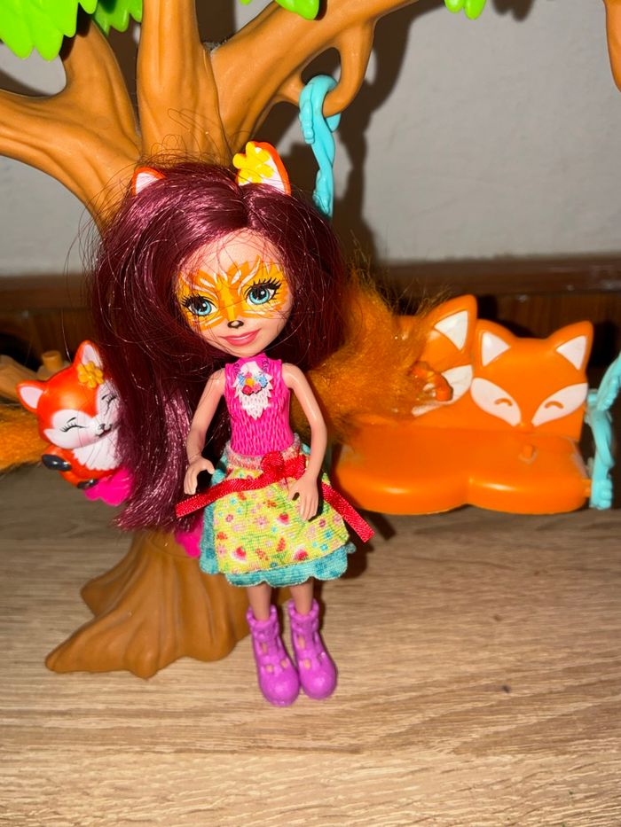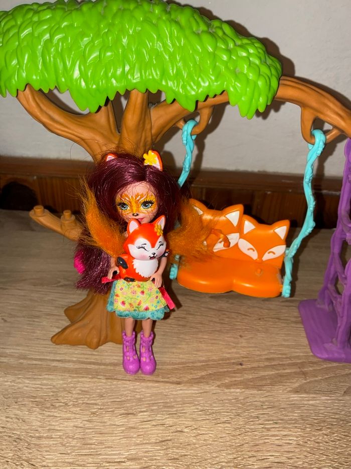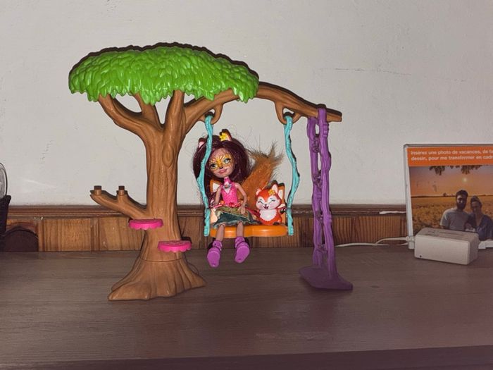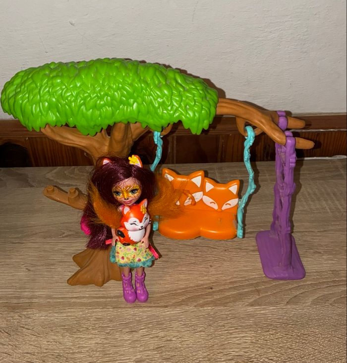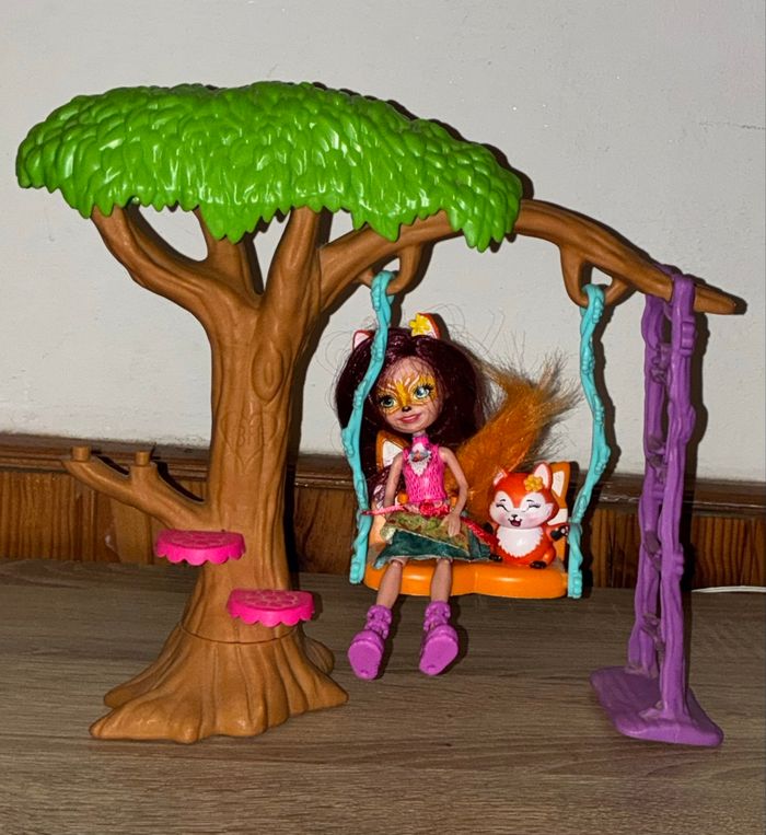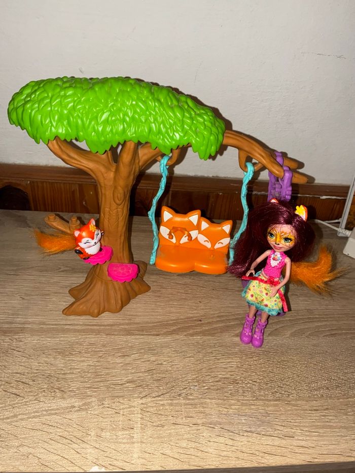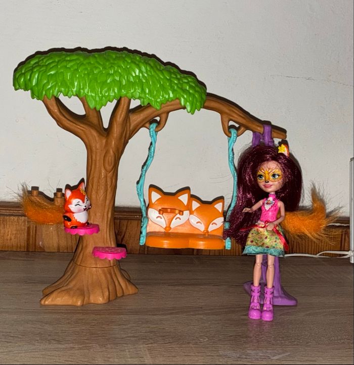 La poupée Felicity Renard et Flick sont prêt à grimper aux arbres , à se balancer et à explorer. Un arbre avec une grande balancelle à deux places, une échelle. (Manque quelques accessoires)