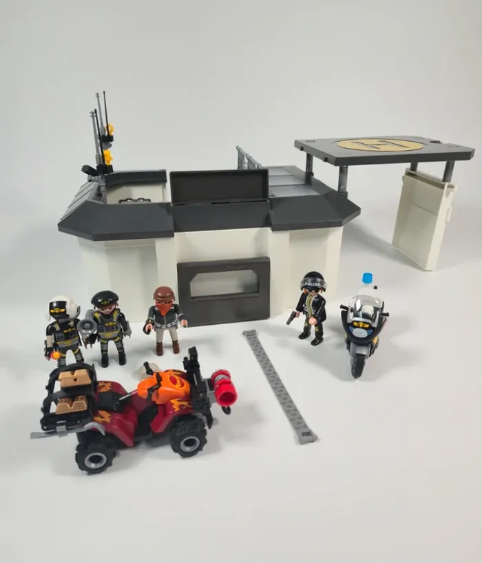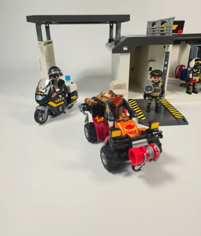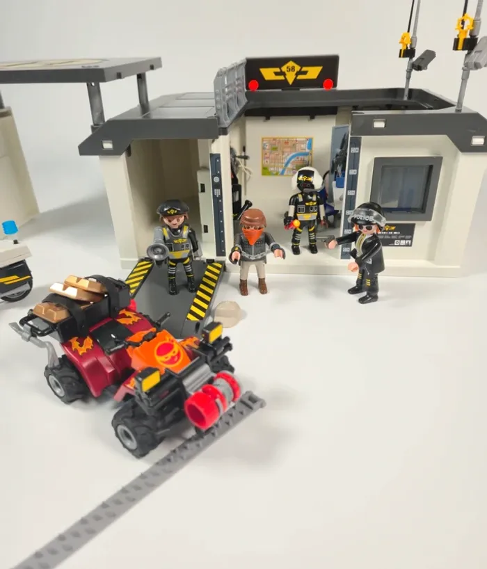 🚔 #UtoPlaythèmePOLICE 🚔 Vends Playmobil Commissariat de Police, Quartier général des policiers à la poursuite d'un voleur de lingots d'or. Très pratique pour le rangement et le transport Les gants rouges ont été remplacés par des gris, le casque de moto et le bureau également L'hélicoptère est manquant Légère usure au niveau du H pour l'hélicoptère (voir dernière photo) En très bon état Set 70338 Expédition sous 24/48 h et emballage soigné. N’hésitez pas à consulter mon profil, où plusieurs thèmes sont classés par # pour une recherche plus facile d’un jouet. Abonnez-vous pour être les premiers informés ! #playmobil #jeuxenfants #jouetenfant #jouetsenfants #jeuxdeconstruction #figurine #personnageplaymobil #personnagesplaymobil #maisonplaymobil #familleplaymobil #piloteplaymobil #motoplaymobil #accessoiresplaymobil #013