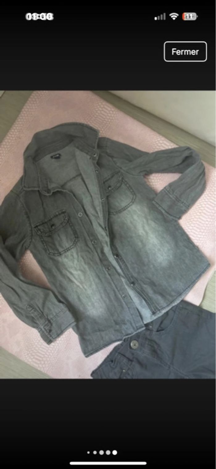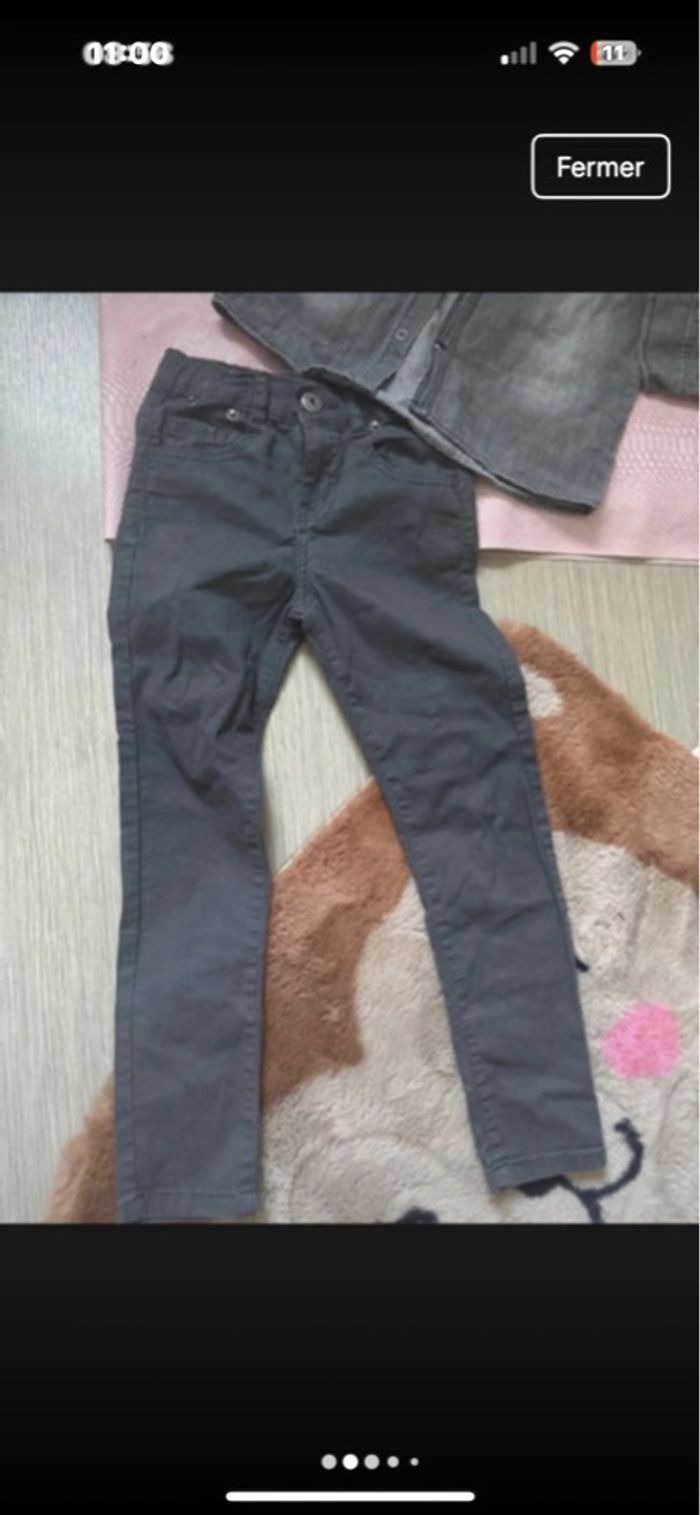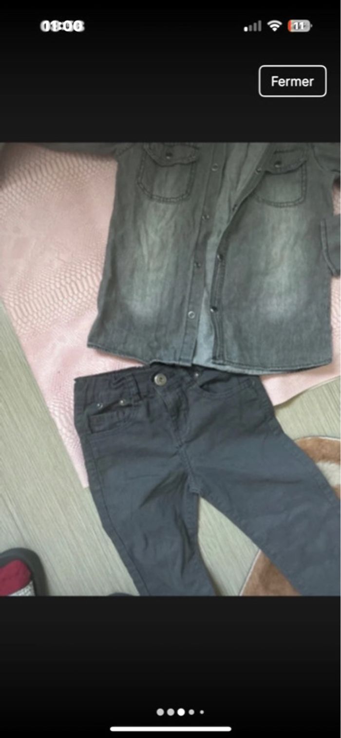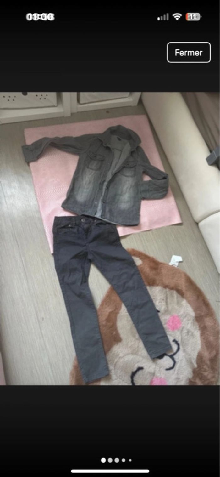 Ensemble pantalon gris rayé et chemise grise 8 ans