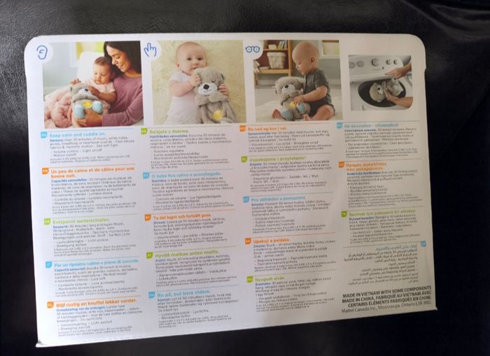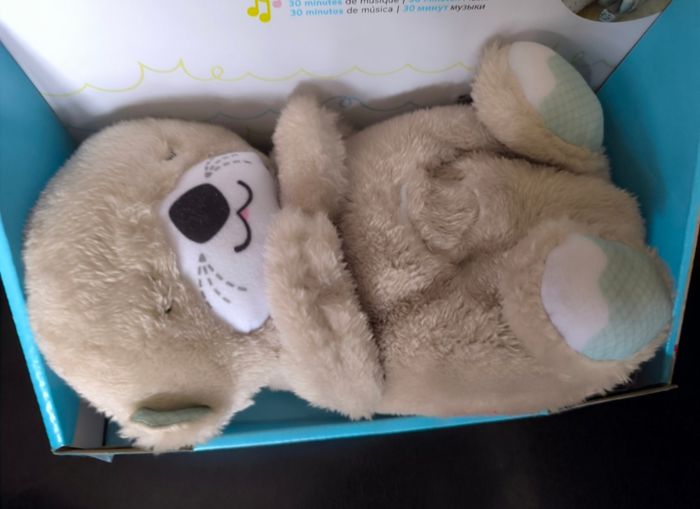 - Peluche douce avec son ventre qui se soulève et s’abaisse en rythme reproduisant les mouvements de la respiration.