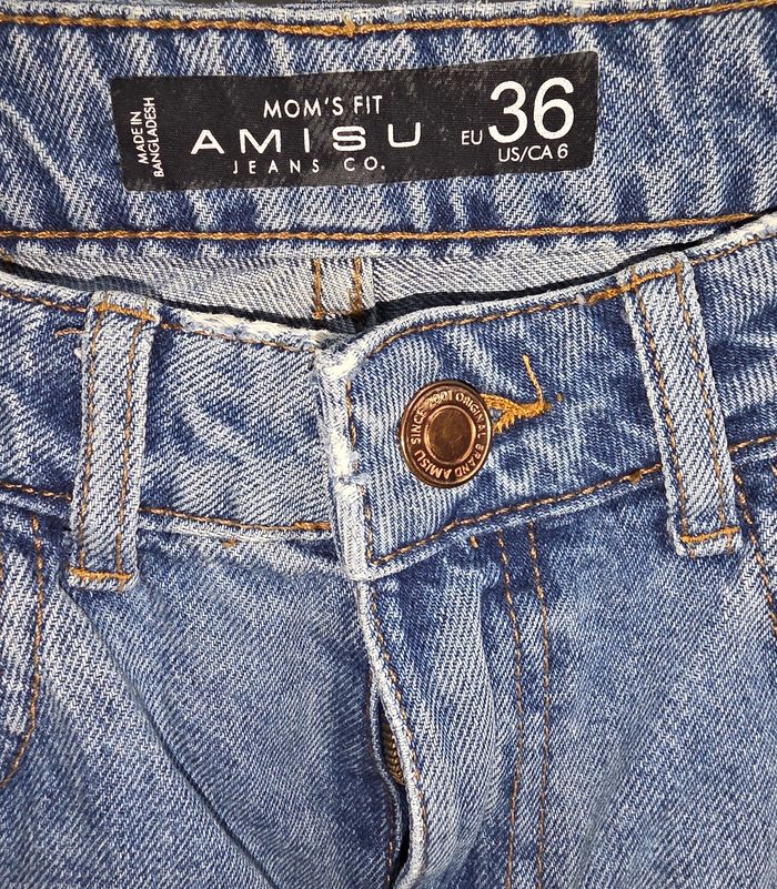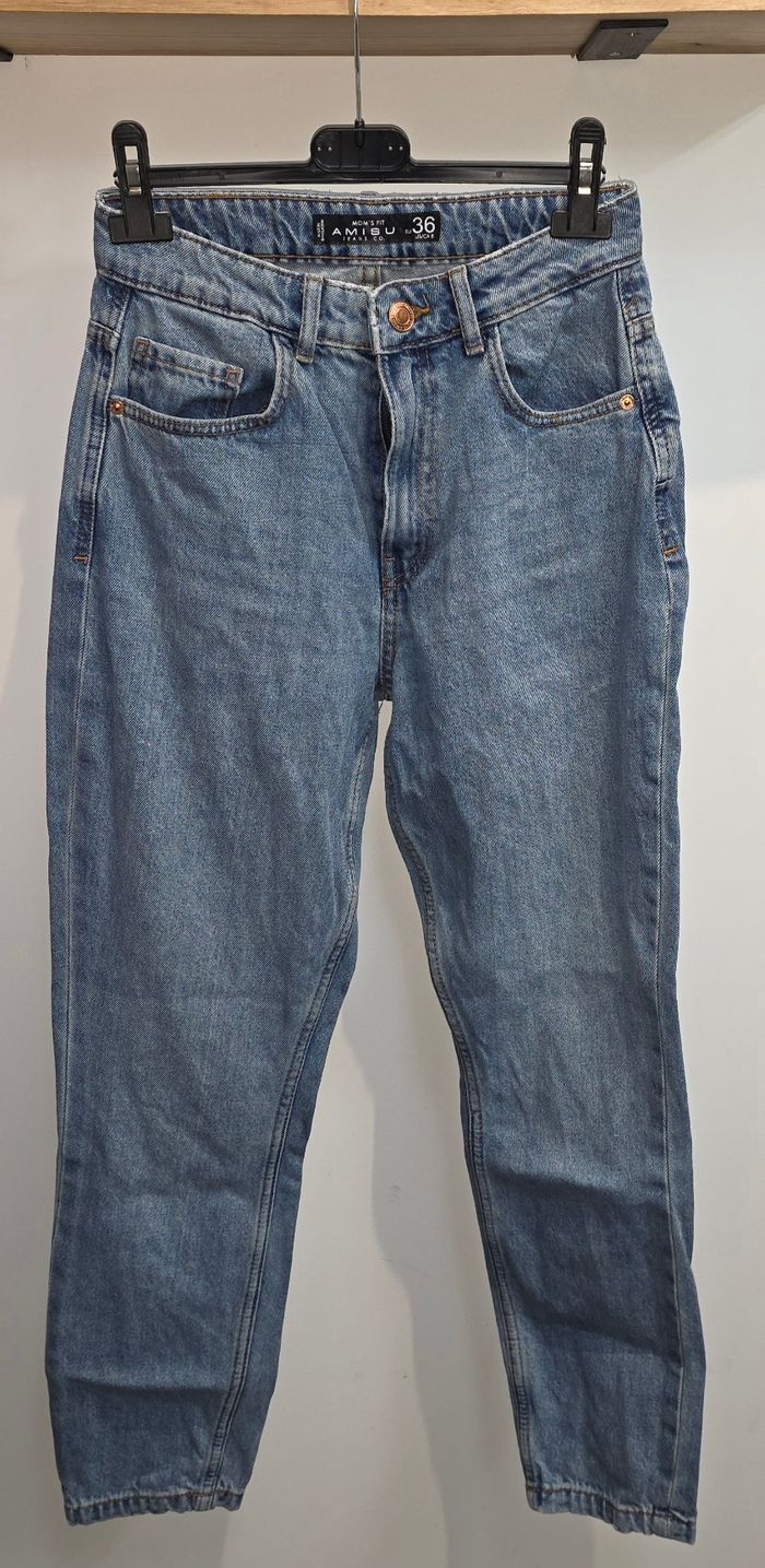 Jeans mom's fit. Marque amisu en taille 36. 100% coton. Petite tâche ( voir photo). Remises sur lots activé ✅️ De plus, moins de frais de livraison 🪙📦 Envois rapide et soigné ! 🚚