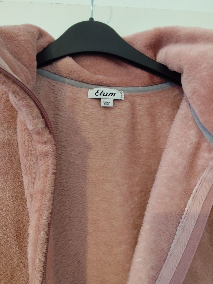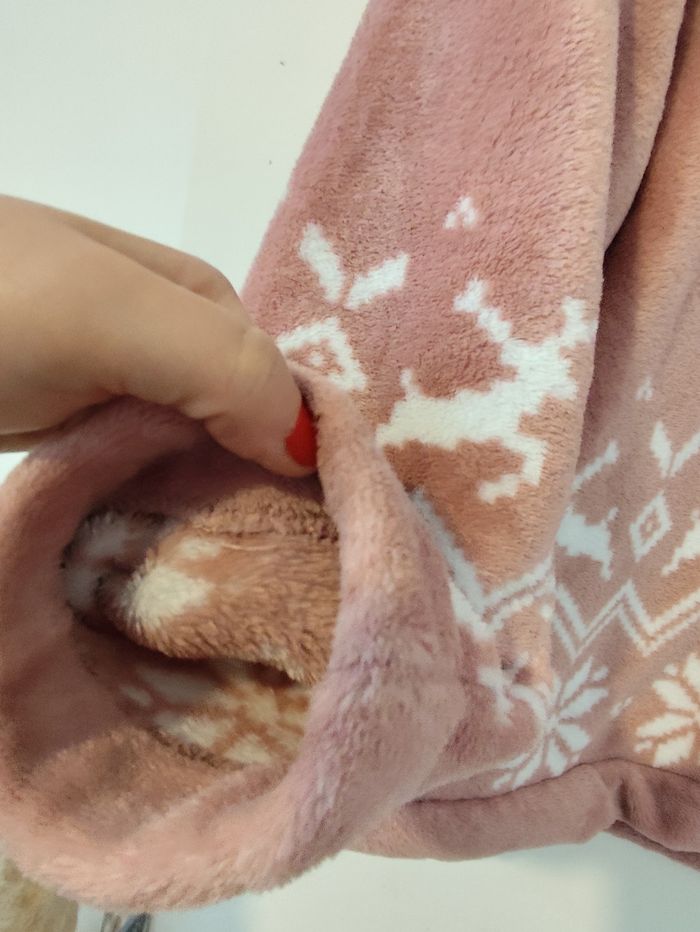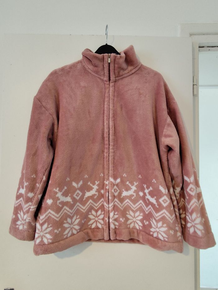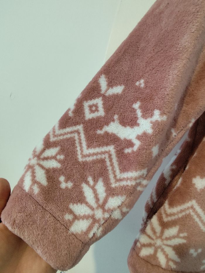Pull polaire bien chaud rose à motifs blancs taille M Etam