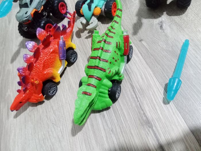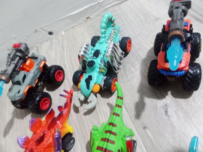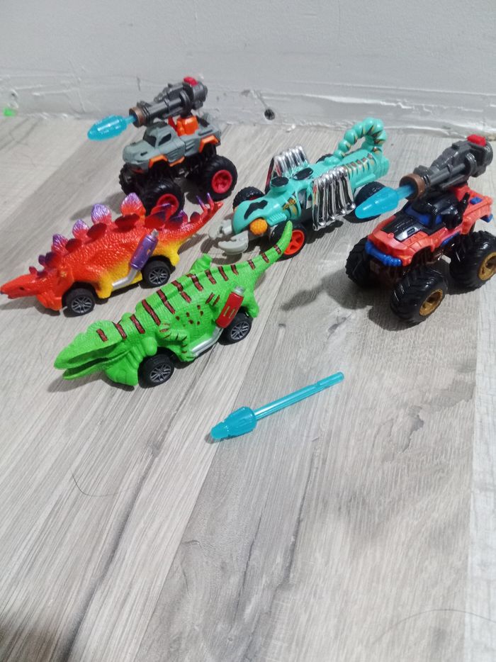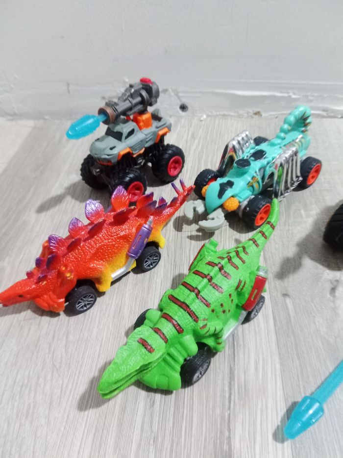 3 véhicules dino et 2 monster trucks